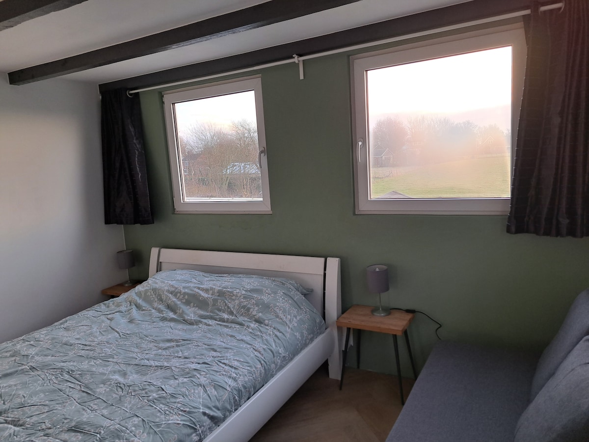 ** Huomaa: Majoittaja puhuu englantia, ranskaa ja saksaa ** Pikkutalo lintujen ja luonnon ystäville, jotka haluavat tutustua laajaan Waddenin alueeseen. Erillisessä talossa on yksinkertaiset mukavuudet, viihtyisä lämmin huone, jossa on oma keittiö, valokuituinternet, TV, wc ja suihku. Tila soveltuu myös häiriöttömään opiskeluun ja/tai työskentelyyn täysin yksityisesti. Keittiön ikkunasta on laaja näkymä puutarhaan ja friisiläisille pelloille.