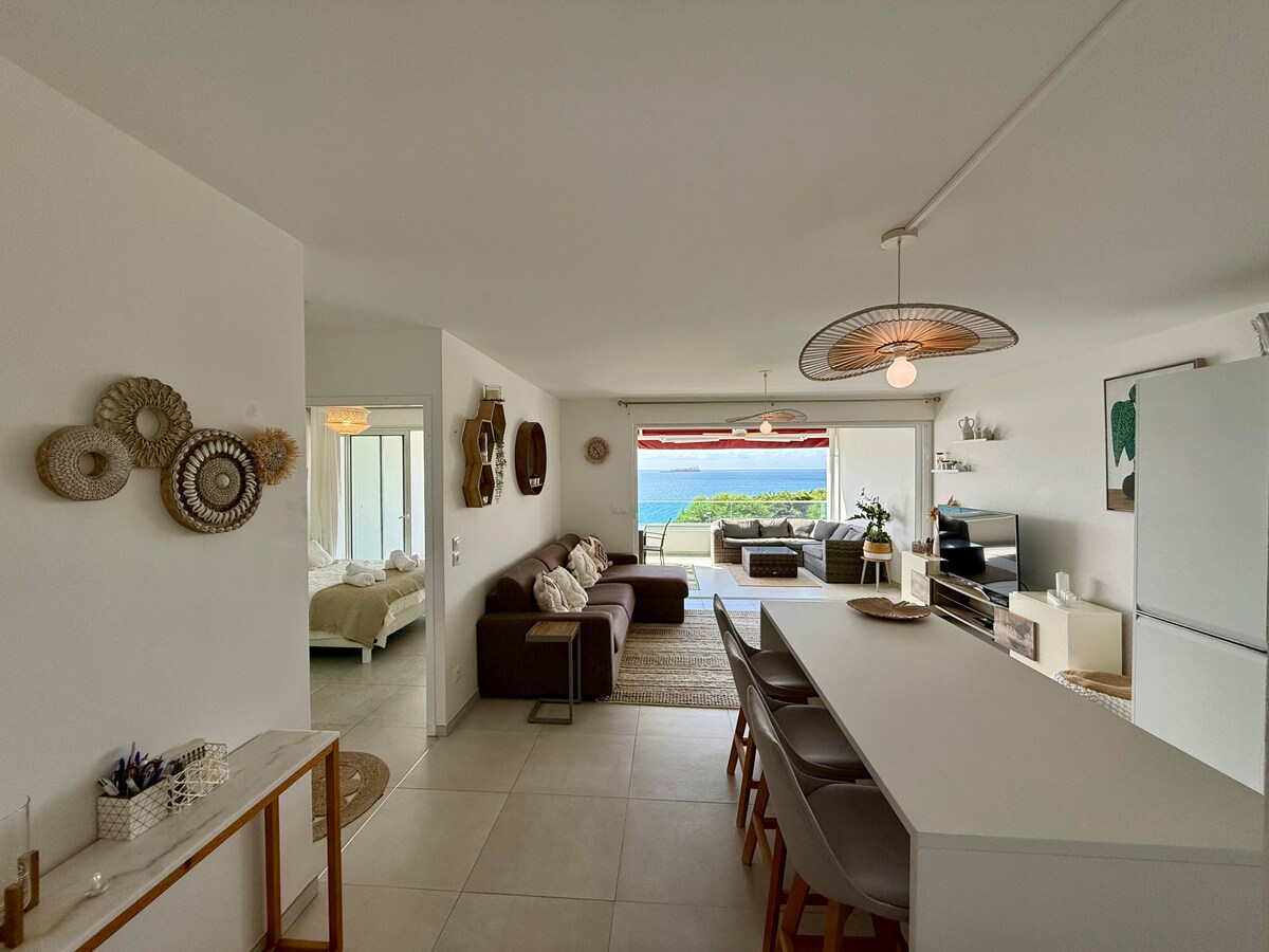 Kaunis huoneisto merinäköalalla, ihanteellinen rentouttavaan majoittumiseen Karibian auringon alla Saavuttuasi sinua viehättävät upeat merinäkymät ja suuri terassi, josta tulee todellinen olohuone. Se on täydellinen aamiaiselle meren äärellä, lukemiseen tai auringonlaskuihin katsomiseen. Huoneisto on valoisa, ja siellä on moderni ja mukava tunnelma. Olohuone avautuu laajasti ulos, mikä tarjoaa vapauden ja loman tunteen ensimmäisistä hetkistä lähtien.