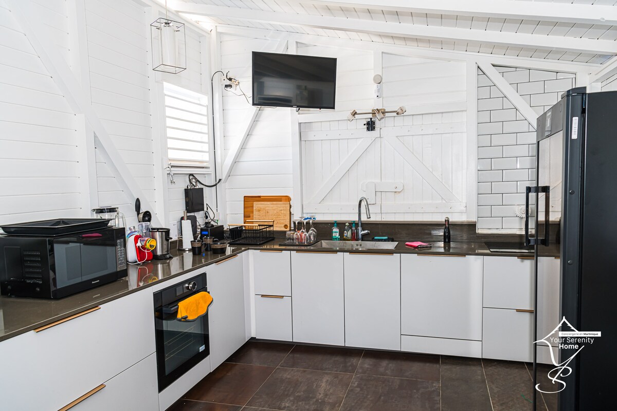 Huoneisto (sviittityyppinen, jossa on makuuhuone, vierekkäinen olohuone, terassi, patio, kylpyhuone kylpyammeella) sijaitsee taiteilijan huvilassa, josta on merinäkymä. Ulkokeittiö on täysin varusteltu. Suuri patio on hyvin aurinkoinen. Tämä muusta huvilasta erillinen asunto sijaitsee rauhallisella asuinalueella 15 minuutin päässä Fort-de-Francesta, 10 minuutin päässä kaupoista ja 5 minuutin päässä lähimmästä rannasta. Ihanteellinen lepoon ja rentoutumiseen, mutta myös työmatkoille.