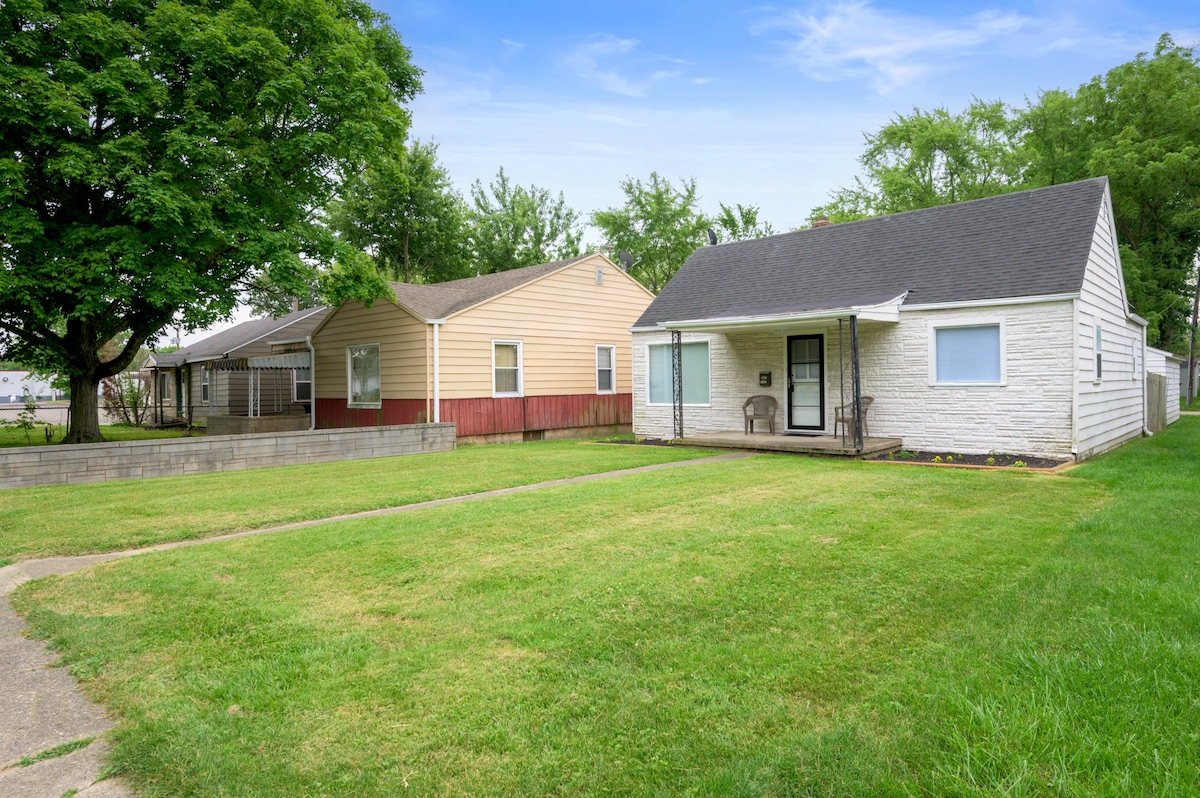 Tämä ihana pieni lomakohde ei tuota pettymystä. Uskon, että se on rentouttava ja mukava paikka viettää aikaa Muncie'ssa. Olemme tarjonneet perusasiat, jotta se voi olla kotisi poissa kotoa: täysin toimiva keittiö, kahvivaihtoehtoja, nopea internet, pyyhkeet, sampoo, hoitoaine, saippuat, vuodevaatteet, xfinity flex ja tv sekä lautapelit. 1/2 mailia kauppoihin ja ruokailuun tai kävely joen varrella, 1 mailia BSU:un. Päätä päivä grillaten ja katsellen upeaa auringonlaskua.