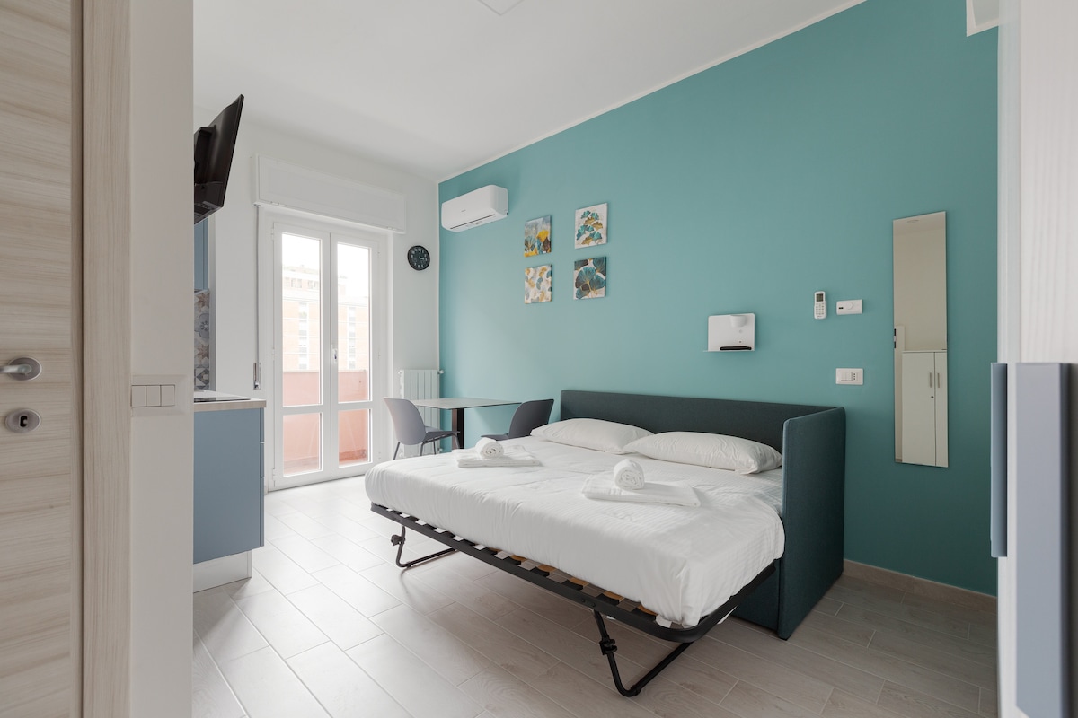 1 täydellinen yksiö, jossa on 1 mukava parivuoteen sohva, vaatekaappi ja TV; kylpyhuone, jossa on pesuallas, wc, jossa on bideesuihku, suihku. Keittokomero, jossa induktiolevyt, jääkaappi, mikroaaltouuni, keittämiseen ja aterioiden nauttimiseen tarvittavat olennaiset välineet. Ilmainen Wi-Fi. TV:n ja kattotuuletinten kaukosäätimet annetaan käyttöön takuumaksua vastaan. Ota yhteyttä pitkiä aikoja varten saadaksesi tietää saatavuudesta ja hinnoista. CIR: 015146-CNI-01679 CIN: IT015146C245WZAHHD