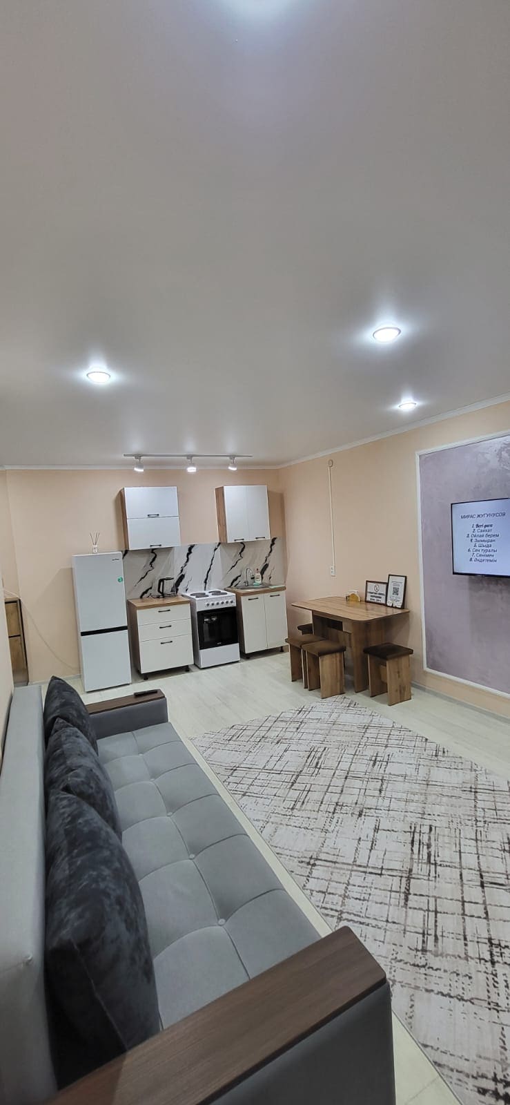 Aito perhehuoneisto syrjäisessä nurkassa kaupungin sydämessä. Kävelyetäisyydellä on nähtävyyksiä: Green Bazaar (700 m), Abay Museum (1 km), Victory Square (1 km), Spartak Stadium (1 km). Talon lähellä on monia ruokakauppoja, "pieni" supermarket, ravintoloita, ostoskeskuksia. Asuntojen erityispiirteet ovat rauhallisella ja turvallisella paikalla, tyylikkäässä paikassa ja moitteettomassa puhtaudessa. Tervetuloa, me huolehdimme matkastasi Kazakstanin vieraanvaraisuudella!