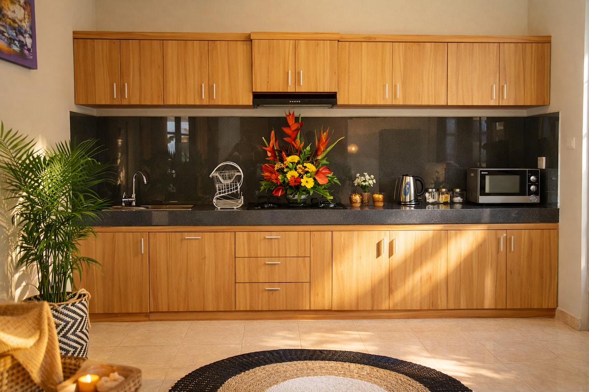 🌿 Trooppinen kahden makuuhuoneen huvila rauhallisalla kujalla, vain 3–5 minuutin päässä Seminyakin sydämestä. Nauti rauhasta kotona, kun suuri supermarketti, kahvilat, hierontapalvelut, pesula ja valuutanvaihto ovat vain minuutin kävelymatkan päässä – paremmilla hinnoilla kuin pääkadulla. Helppo pääsy Sunset Roadille ilman ruuhkia. Kaikki makuuhuoneet ovat yhdessä kerroksessa, ja niissä on yksityiset kylpyhuoneet. Tilava, rauhallinen ja ihanteellinen vieraille, jotka arvostavat tilaa hengittää.