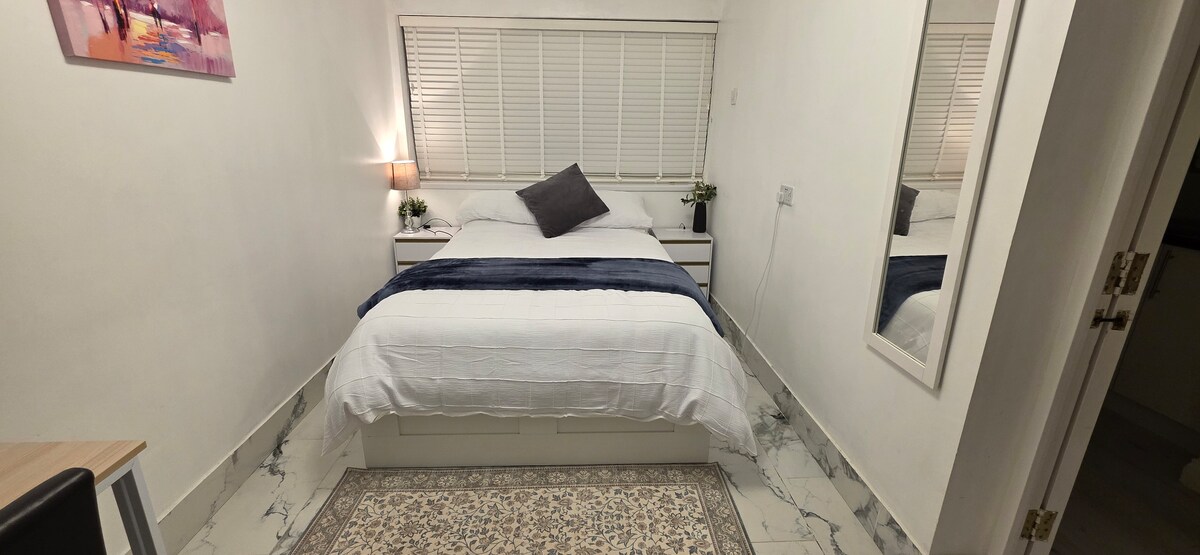 Itsenäinen bungalow, jossa on kylpyhuone, jossa on kylpyamme ja suihku, olohuone, täysin varusteltu keittiö, jossa on pesukone, silitysrauta ja silityslauta, sähkökeitin, mikroaaltouuni ja jääkaappi. Tilava makuuhuone, jossa on parivuode ja sopiva työtila kannettavalle tietokoneelle / pukeutumispöytä ja hiustenkuivaaja. Bungalow sijaitsee hyvin pääasiallisen talomme alueella, ja siellä on pysäköinti.