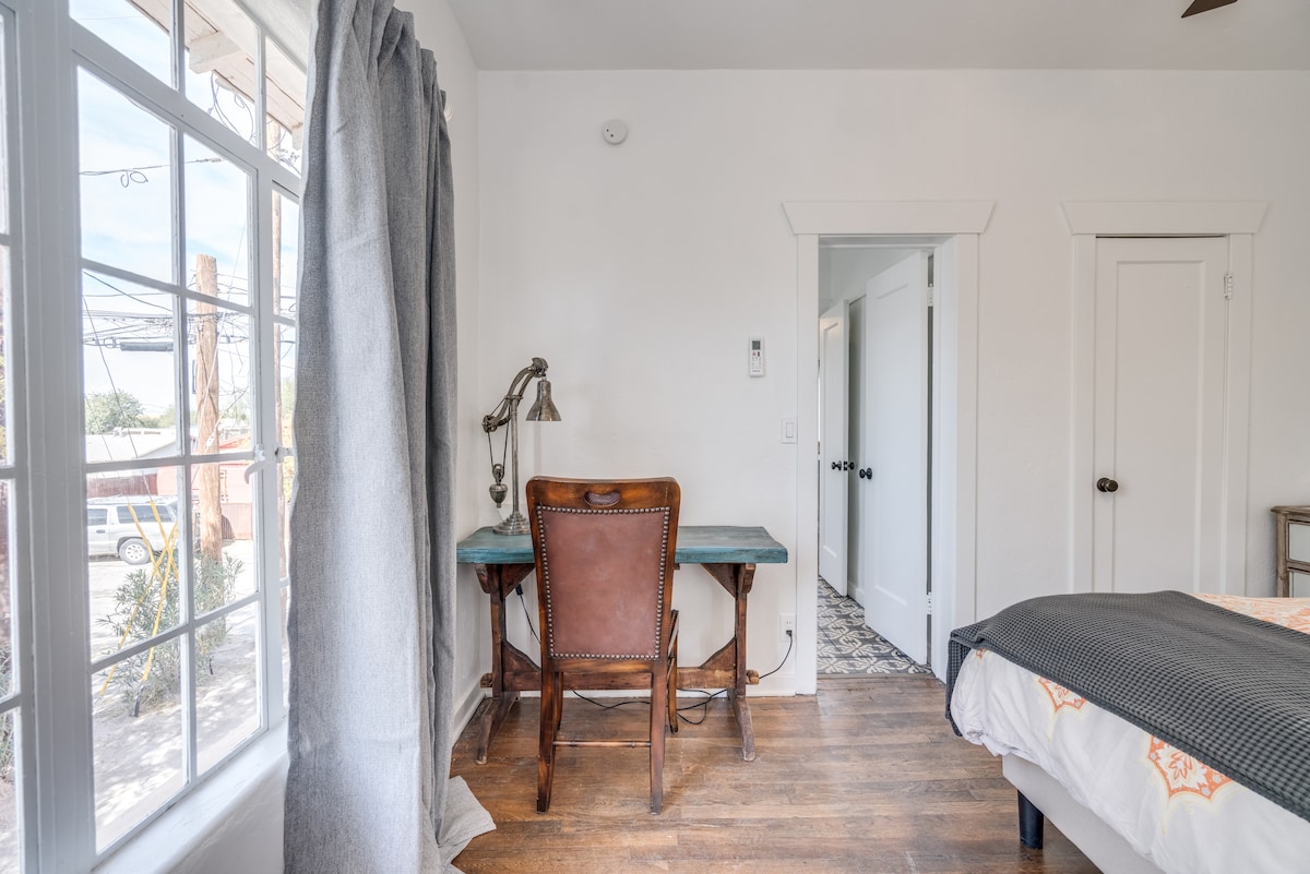 Täydellinen viikonloppulomalle tai pitkäaikaiseen majoittumiseen, keskustan casitamme on täysin varustettu kaikella, mitä tarvitset kokeaksesi kaiken, mitä Tucsonilla on tarjottavana. 344 neliömetrin pieni ja mahtava tila tarjoaa täysin varustetun keittokomeron, teatterilaatuisen viihdekeskuksen, nopean wifi-yhteyden sekä pesukoneen ja kuivausrummun. Nauti tilavasta patiosta, kun siemailet aamukahvia tai grillat illalla. Sinun voi olla vaikea kirjautua ulos tästä kodikkaasta helmestä!