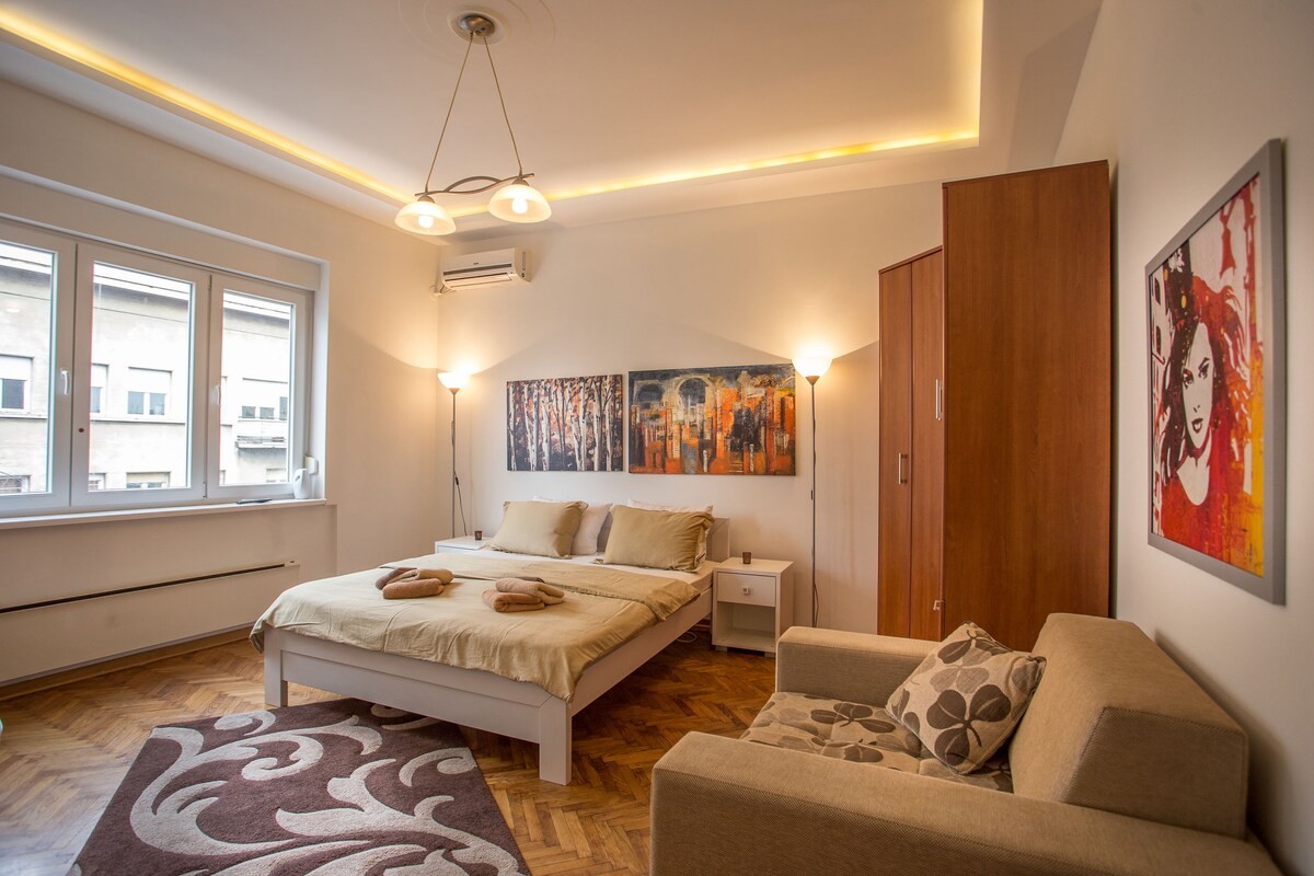 Uusi huoneisto Belgradin keskustassa. Kohde sijaitsee kätevällä paikalla, lähellä kaikkia paikallisia mukavuuksia. Rauhallinen osa katua. Huoneistoissa on pikasisään- ja uloskirjautuminen, savuttomat huoneet ja ilmainen WiFi. Kaikissa huoneissa on ilmastointi ja litteä televisio. Olohuoneessa on vuodesohva 2 hengelle. Keittiössä on astianpesukone, uuni ja jääkaappi. Huoneistossa on yksi kylpyhuone, jossa on suihkukaappi ja pesukone. Kuljetus lentokentältä/lentokentälle saatavilla lisämaksusta.