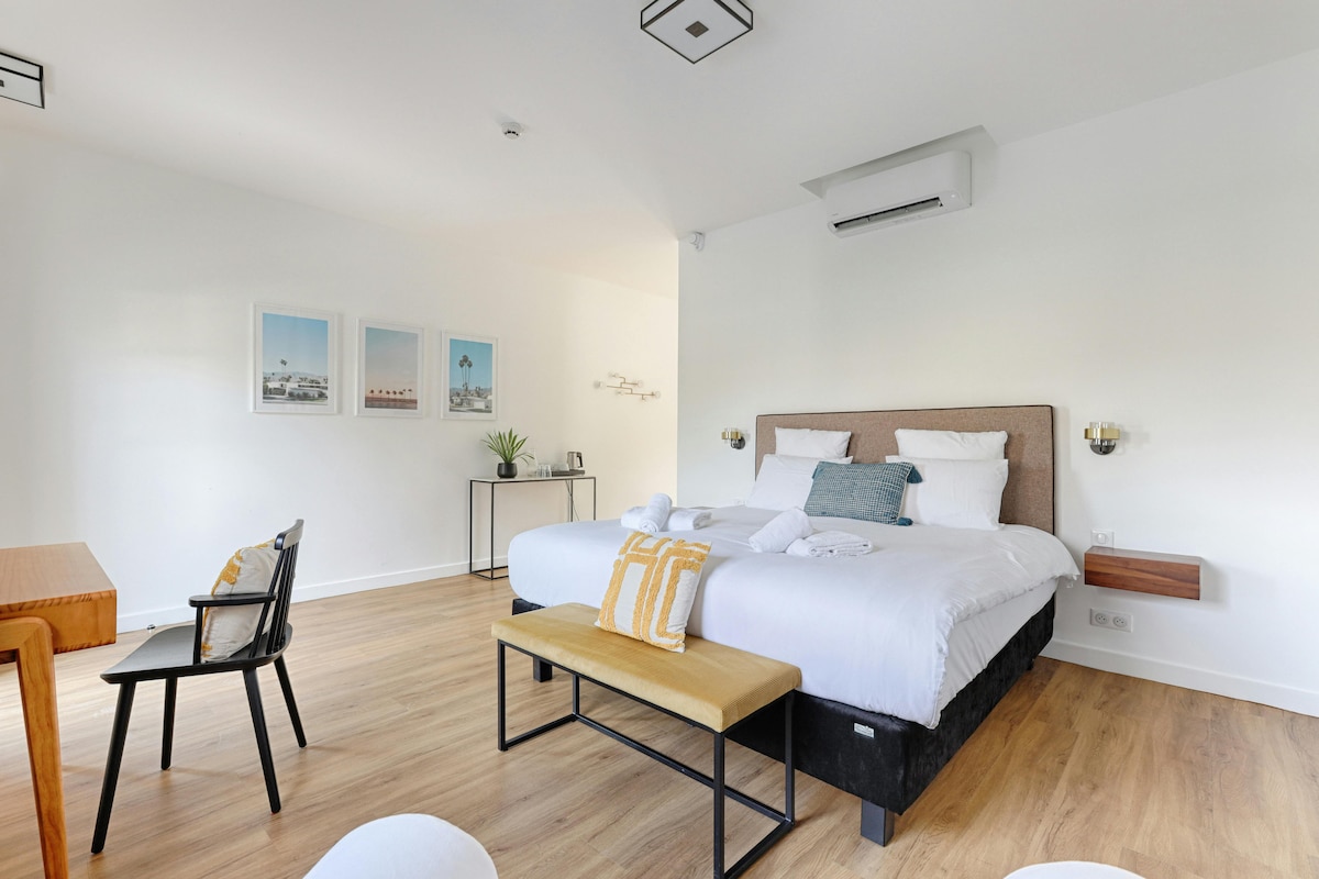 Tämä rauhallinen keidas on suunniteltu harkiten tarjoamaan optimaalisen mukavuuden ja esteettömyyden, ja se on räätälöity vastaamaan liikuntarajoitteisten vieraidemme tarpeita. 21 m²:n huoneessa on täysin esteetön kylpyhuone, jossa on japanilaistyylinen wc, suihkutila tukitangolla, älypeili ja queen-vuoteen kokoinen Hypnove-muistivaahtosänky (160x200, Sleep and Alertness Centerin testaama – parantaa taatusti unen laatua).