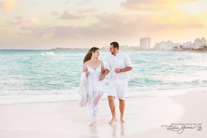 30 minuutin pariskuntaportretti Cancúnin hotellivyöhykkeellä Photosmile Photographyn toimesta.