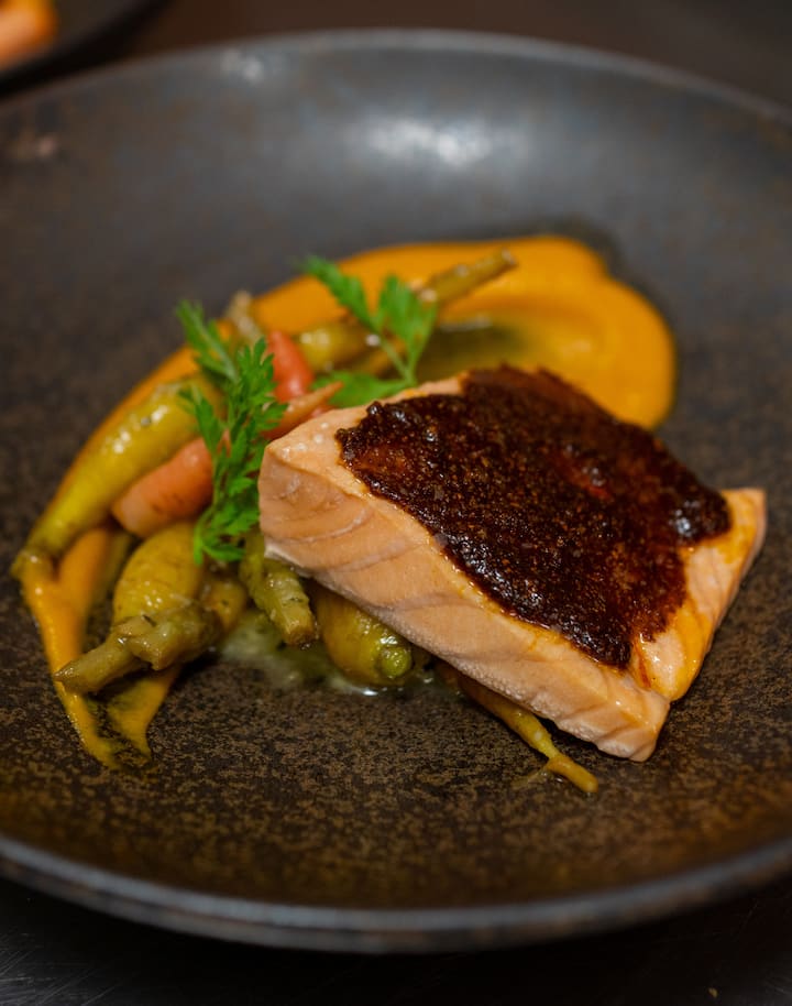3 ruokalajin menu viiniparituksineen.Kursseihin kuuluvat kokin piimämaissileipä, jäähdytetty kona-hummeri, chermoula-lohi tai viisimaustesian lapa ja kurpitsapanna cotta.