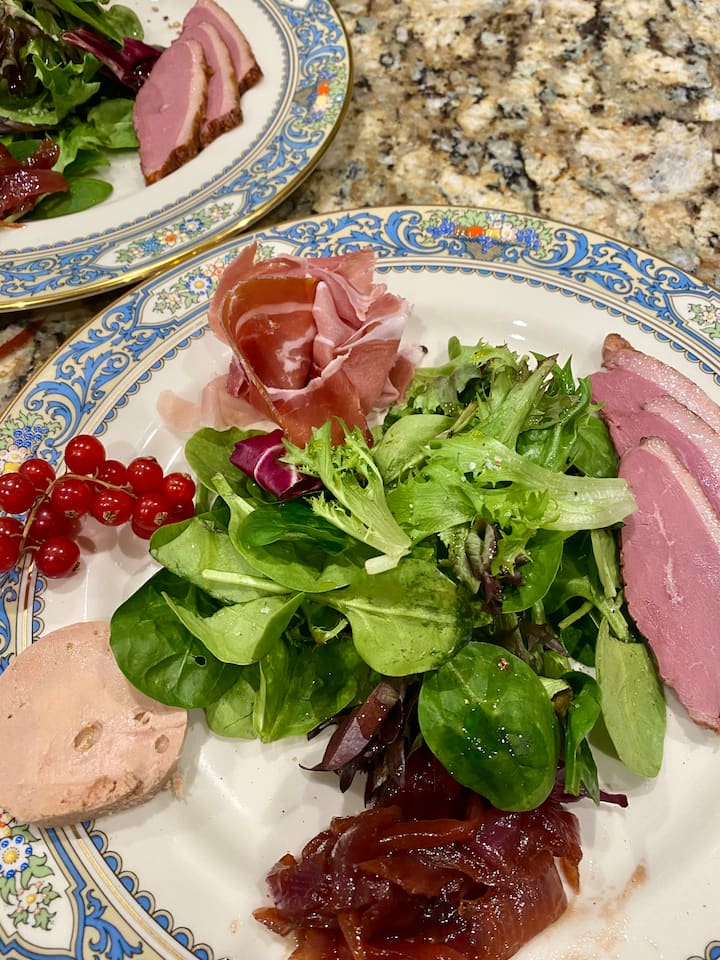 Gourmet-salaatti (sekasalaatti, hanhenmaksa,