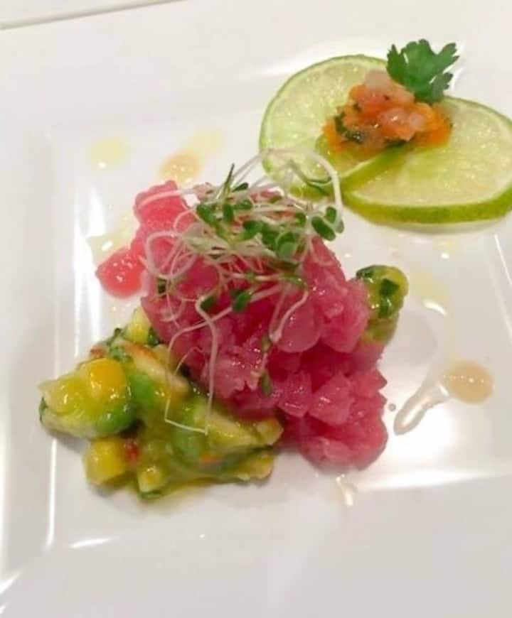 Ja tonnikalatartar avokadolla ja mangosalsalla,