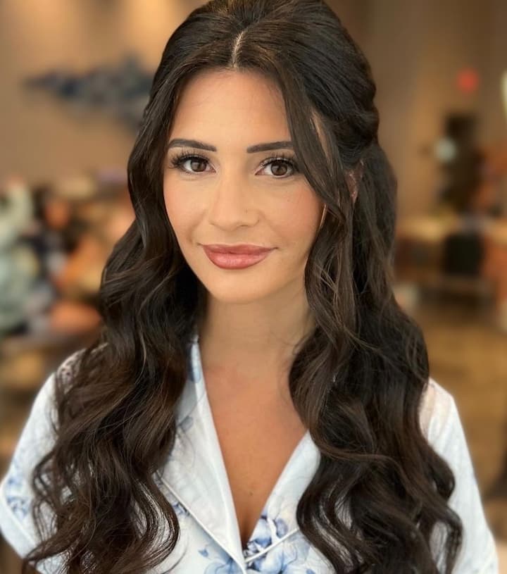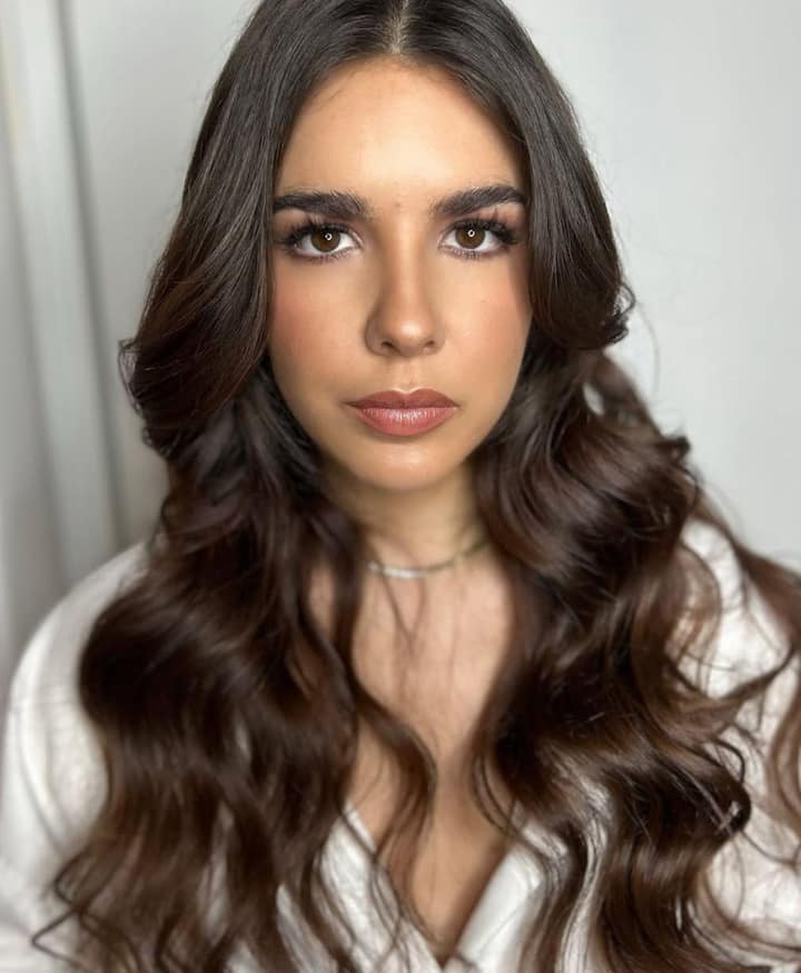 Sosiaalinen meikki ja löysä kampaus, jossa on aaltoja.