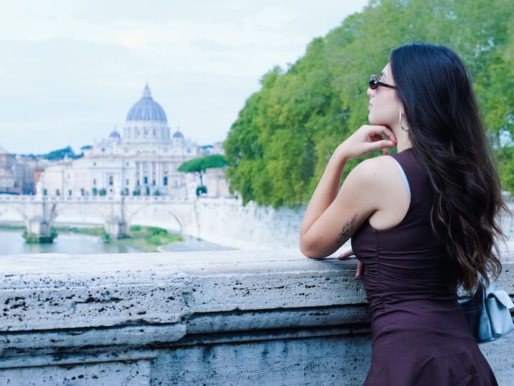 Saat valokuvakirjan, joka vangitsee muistoja Rooman kaduilta lähellä Pietarinaukio. Tämä istunto alkaa Castel Sant'Angelon taustalla, jatkuu sitten Via della Conciliazionea pitkin kohti Piazza Navonaa ja pysähtyy matkan varrella tärkeimmissä nähtävyyksissä.