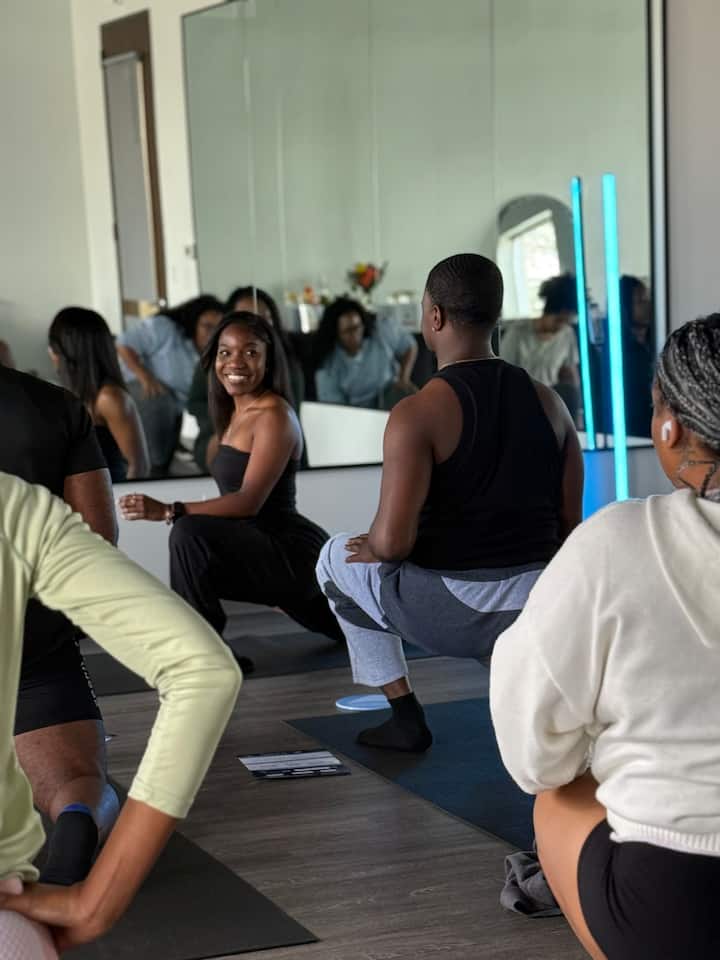 Tämä on yksityisille ryhmille suunniteltu ohjaajan johtama venyttelyhetki, johon sisältyy hengitysharjoituksia ja jota täydentää vesi, tee tai kahvi ja juuri puristettu mehu. Elämyksiin voi kuulua ääniterapiaa, mimosa-drinkkejä tai mocktailbaari, ja ne sopivat juhliin, retriitteihin tai tarkoituksellisiin keskusteluihin.