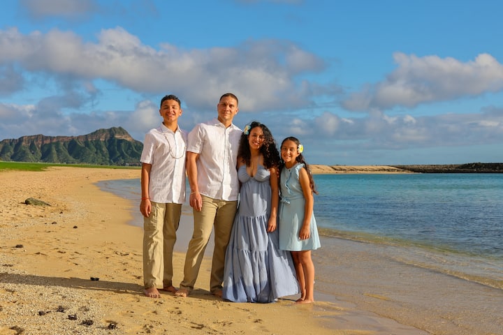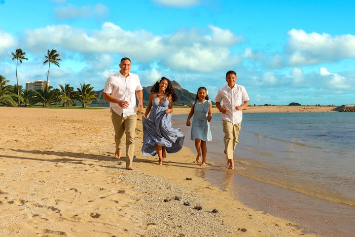 Tallenna perheesi erityiset hetket vain 30 minuutissa nopealla ja hauskalla minikuvauksella kauniilla Oahun rannoilla tai maisemapaikoissa. Tämä valokuvauskerta sopii täydellisesti perheille, pariskunnille tai pienille ryhmille, ja siihen sisältyy 15 täysin muokattua digitaalista valokuvaa. Keskityn luonnollisiin hymyihin, leikkisiin hetkiin ja aitoihin yhteyksiin ja luon ajattomia muistoja Havaijin upeiden maisemien äärellä. Yksinkertainen, rentouttava ja ammattimainen elämys, joka on suunniteltu sekä vierailijoille että paikallisille!
