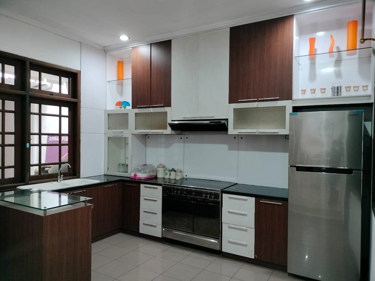 Klassinen trooppinen talo, jossa on 2 kerrosta, tilava olohuone, jossa on suuri tuuletin luonnolliseen ilmanvaihtoon, 4 makuuhuonetta, joissa on ilmastointi, 3 kylpyhuonetta, etu- ja takaterassi, etu- ja takaparveke ja grillausalue takapihalla. Pysäköintialueella on tilaa 8 autolle. Täydellinen yhteisö-, yritys-, organisaatio- tai perhetapahtumiin. Kuten tiiminrakennus tai perheiden kokoontuminen Sijaitsee osoitteessa Jl. Raya Mabes Hankam, lähellä Paramadina University Cipayungia. Helppo pääsy JORR-maksutien kautta.