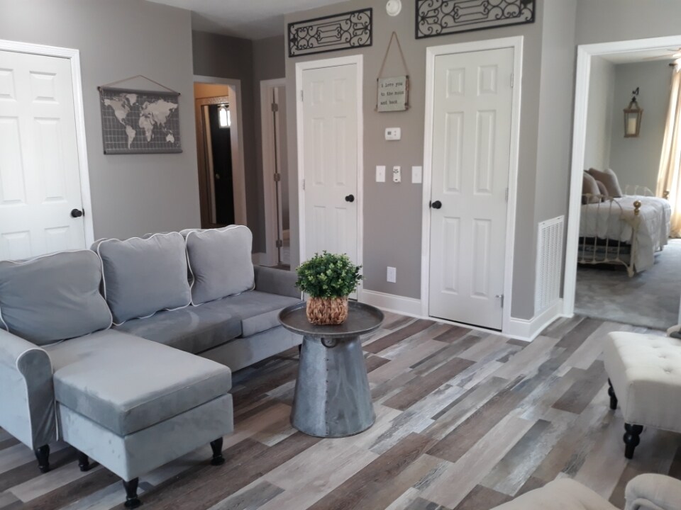 Nauti elämän helppoudesta tässä rauhallisessa, keskeisellä paikalla sijaitsevassa kohteessa. Tämä huoneisto sijaitsee autotallin yläpuolella. (Noin 10 askelta) Patio on maatilan yläpuolella. Se on samassa kiinteistössä kuin toinen 3 makuuhuoneen ja 2 kylpyhuoneen Airbnb-kohde. Se sijaitsee kätevästi lähellä Pigeon Forgea ja Gatlinburgia. Alle 20 minuutin ajomatka molempiin. Ei kukkuloita, kaikki päällystetyt tiet, 1,6 km valtatieltä. Täysin yksityinen ja erillinen tila. Tulet varmasti rakastamaan kohteen tarjoamaa rauhallisuutta.