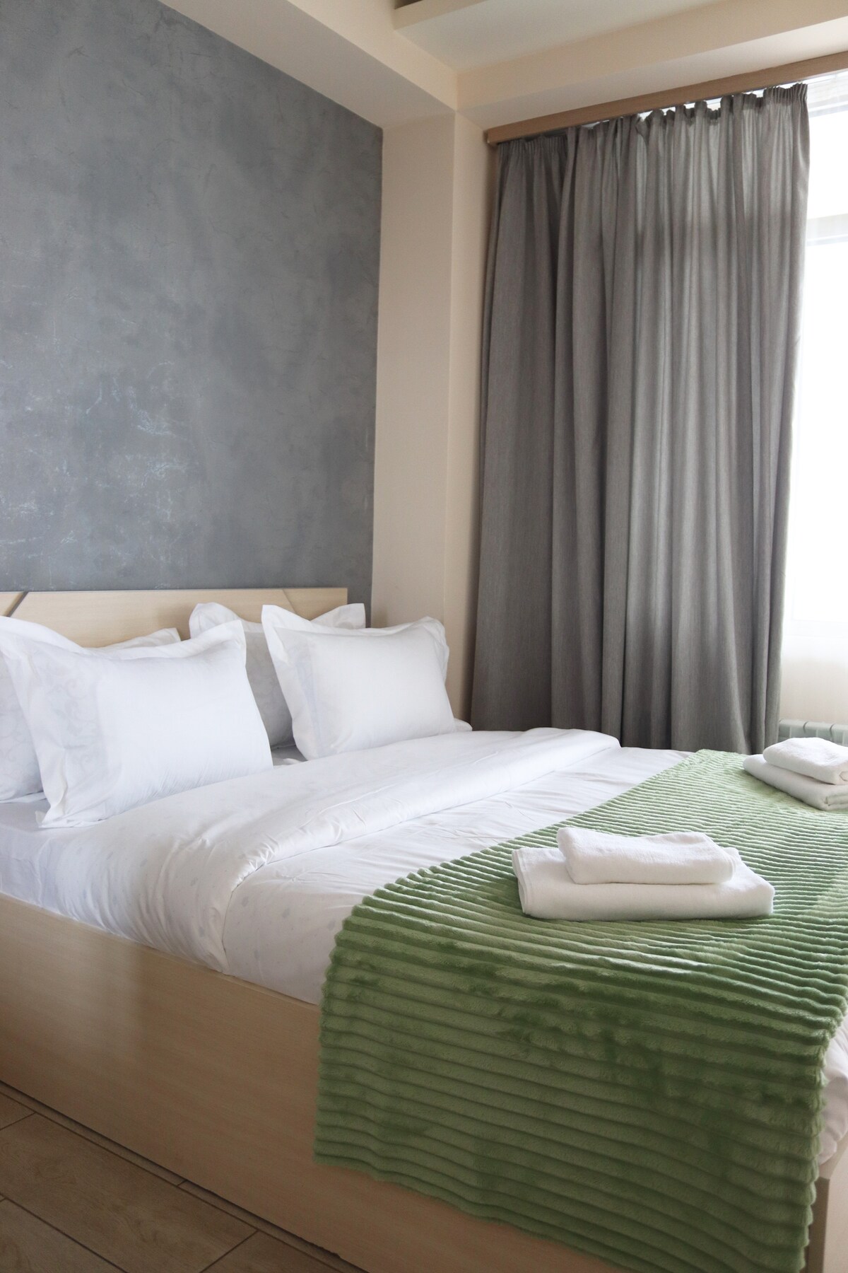 Tilava ja valoisa huoneisto Jerevanin sydämessä!Sijainti on erinomainen, ja kaikki tarvitsemasi on kätevästi saatavilla, kuten ravintoloita, kahviloita ja matkailupaikkoja. Huoneisto on täysin varustettu kaikilla, mitä tarvitset matkallasi. Olohuoneen ruokailutilassa on vuodesohva, keittiössä on laitteet, kuten mikroaaltouuni ja kahvinkeitin, makuuhuoneessa on parivuode ja kylpyhuone. Terveytesi on meille tärkeintä. Kohteessamme noudatetaan tehostetun siivouksen ohjelmaa, johon kuuluu ammattilaisten suorittama siivous ja strateginen desinfiointi.