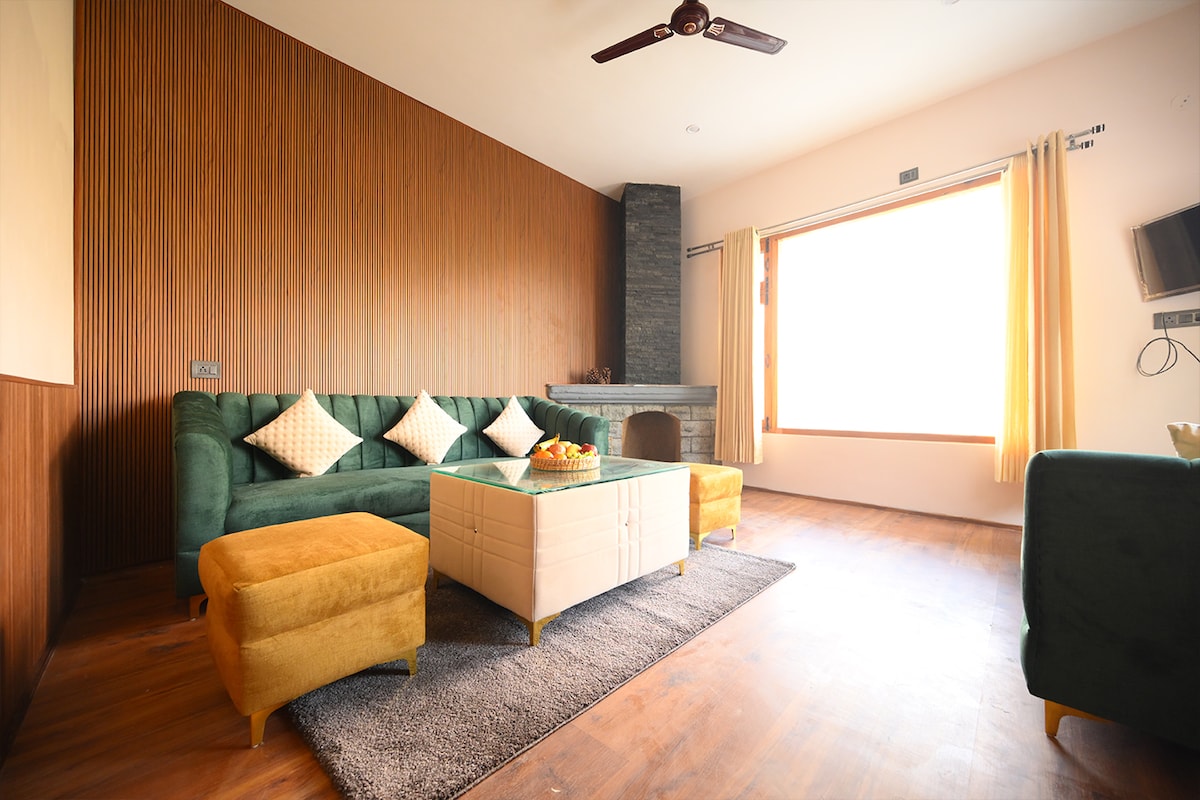 Tervetuloa viihtyisään lasisella julkisivulla varustettuun puumökkiin, joka sijaitsee rauhallisessa Sainj-laaksossa lähellä Himalajan kansallispuistoa (GHNP). Tämä omenoiden ja luumujen ympäröimä rauhallinen lomakohde sopii täydellisesti pariskunnille, yksin matkustaville ja luonnonystäville. Herää aamunkoittoon lumipeitteisten vuorten yllä, kuuntele linnunlauluja ja vietä iltoja nuotion äärellä tähtitaivaan alla. Nauti tuoreesta, paikallisesta himachalilaisesta ruoasta ja puhtaasta vuoristoilmasta. Huomaa: yli 50-vuotiaat vieraat eivät ole sallittuja.