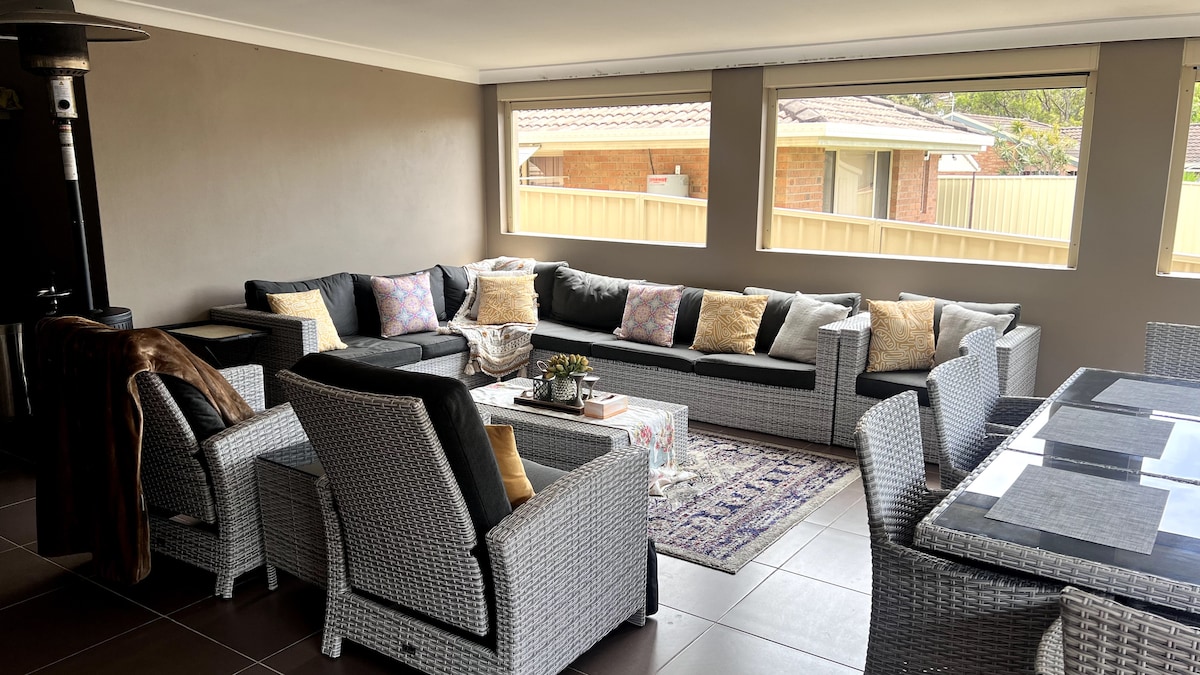 - Tilava talo kohtuullisen rauhallisella alueella, jossa on hyvät nähtävyydet lähellä, kuten Jamberoo Action Park ja Shellharbour Marina (lisää listatussa opaskirjassa) - 5 minuutin ajomatka rannalle. - Bussi- ja rautatieasema hyvin lyhyen kävelymatkan päässä. - Monet kaupat kävelyetäisyydellä. - Kevyt aamiainen ja välipalat (muroja/paahtoleipiä/levitteitä/teetä/kahvikapseleita/maitoa/keksejä). Varaa 1. huone pariskunnalle (koko yksityinen talo) ja 25 dollaria jokaisesta vierasta (esim. enintään 5 lisävierasta) 7. vieraalla on käytössään kokoontaitettava sänky ja vuodevaatteet.