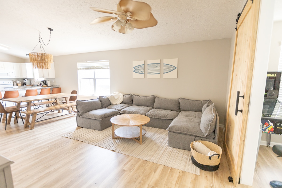 Surf Shack! Firepit arcade minigolf, 4 min 2 beach