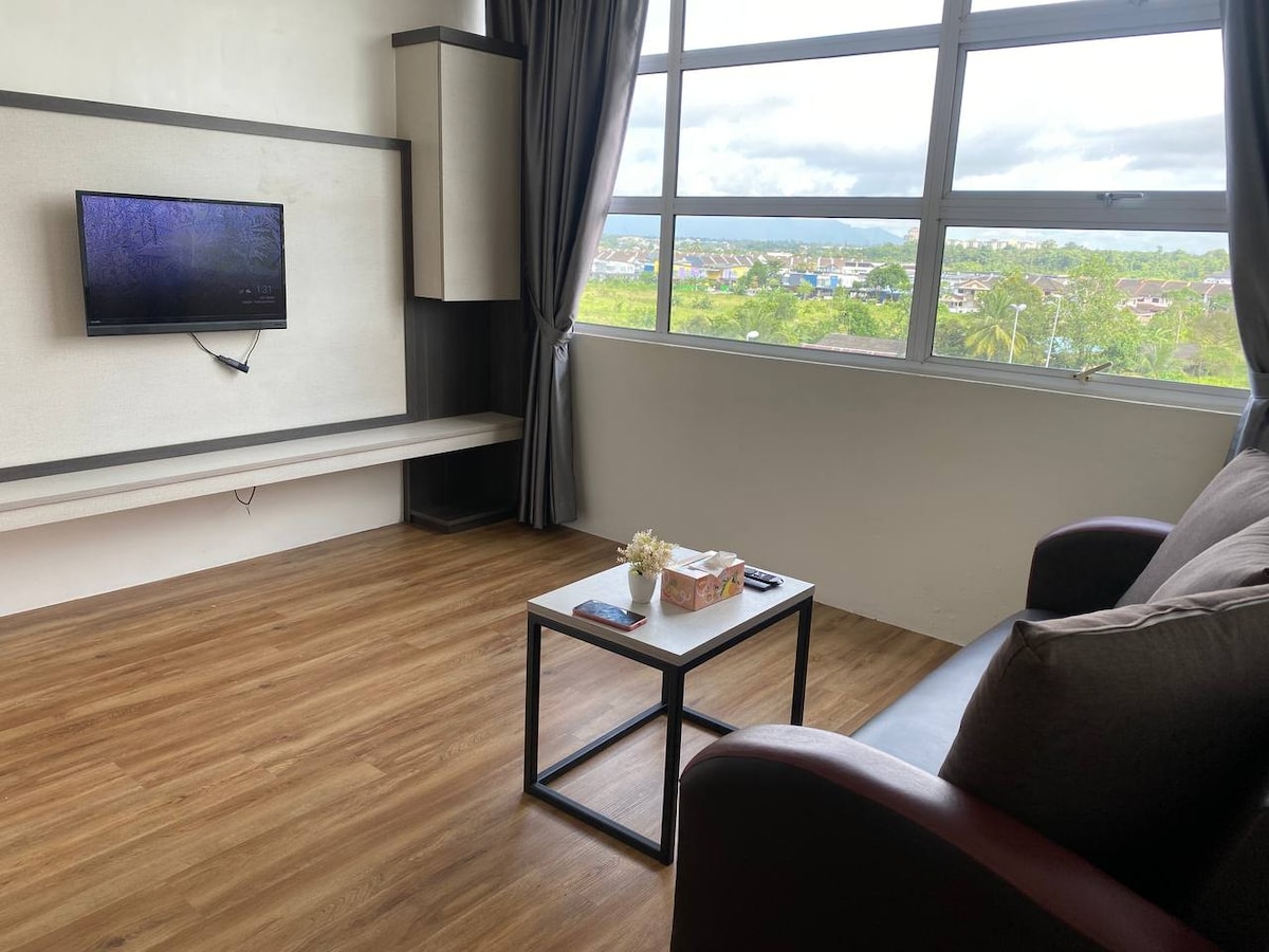 Tervetuloa puhtaaseen ja viihtyisään 2 makuuhuoneen Muji-tyyliseen huoneistoon D'Millenia Residence -rakennuksessa, Kota Samarahanissa. Tilamme on puhdas ja minimalistinen, ja siellä on lämpimiä, rauhoittavia sävyjä. Nauti mukavista vuoteista, täysin varustetusta keittiöstä, kuntosalista ja rauhallisesta ympäristöstä – rentouttavasta kodista poissa kotoa. Täydellinen: * UNIMAS/UITM-opiskelijoiden perhevierailut * Sairaalan käynnit Sarawak Heart Centre & Teaching Hospital -sairaalaan * Julkishallinnon tai yksityisen sektorin työmatkamajoittumiset * Muslimeille sopiva