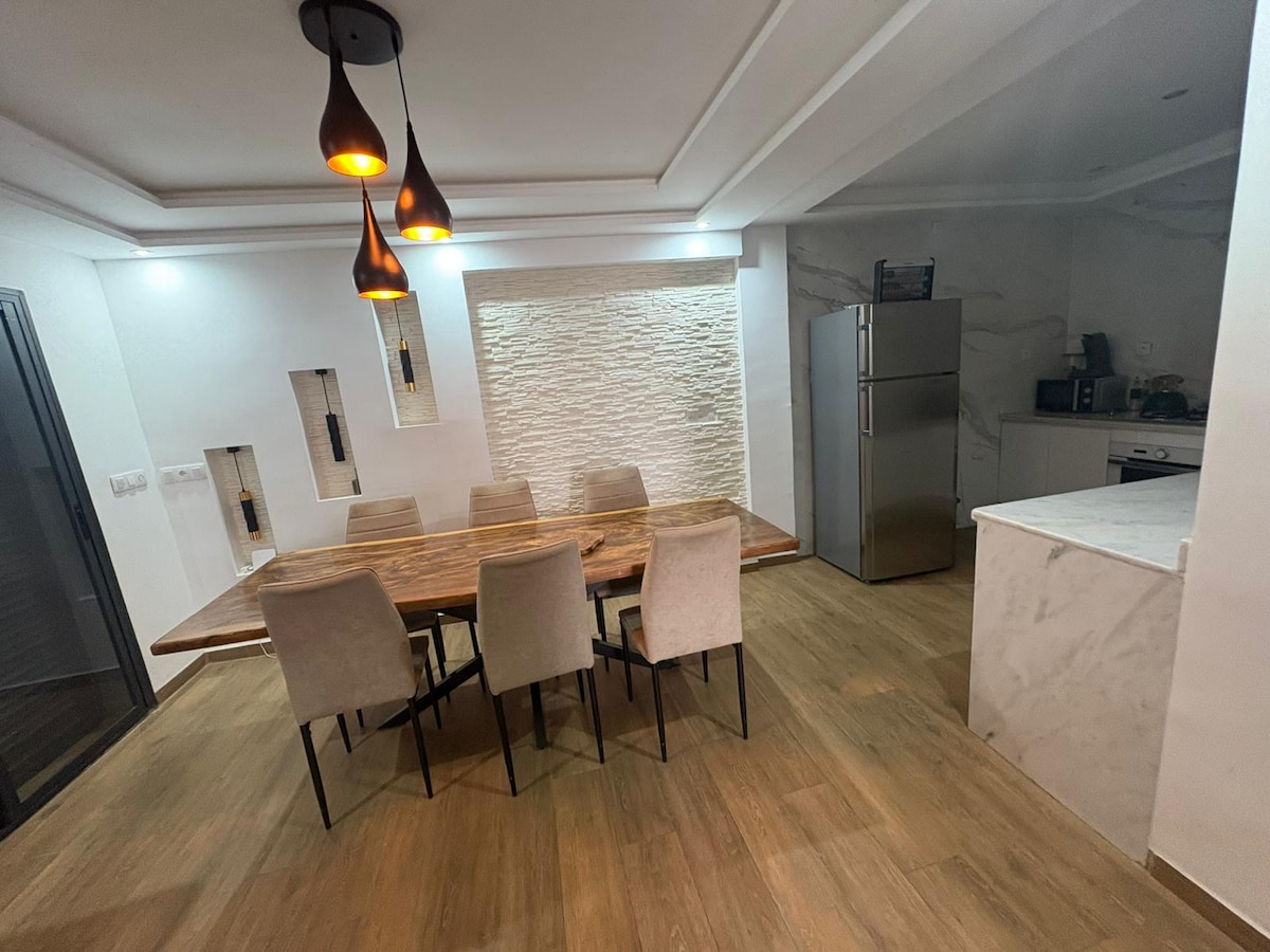 Nauti täysin varustellusta, huolellisesti sisustetusta kodista, jossa lähes kaikki laitteet ovat uusia optimaalisen mukavuuden varmistamiseksi koko majoittumisesi ajan. Löydät jopa vesisuodattimen, jotta voit nauttia puhtaasta vedestä milloin tahansa. Huoneisto sijaitsee lähellä monia palveluja: McDonald's, BIM, kahviloita, ravintoloita ja kauppoja on kävelymatkan päässä. Täydellinen matkailijoille, jotka haluavat yhdistää nykyaikaisuuden, käytännöllisyyden ja mukavuuden Oujdan kaupungin sydämessä.