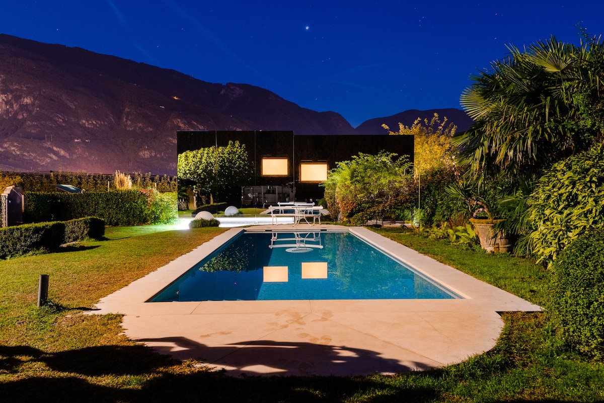 Talo sijaitsee erittäin rauhallisessa unelmapaikassa Etschtalin hedelmätarhoissa. Huoneisto sijaitsee 1. kerroksessa, on 120 neliömetriä ja siellä on tilaa jopa 6 vieraalle. Bolzano on 10, Merano 20 ja Dolomiittien hiihto- tai vaellusmahdollisuudet 40 minuutin päässä. Pyöräreittejä on aivan nurkan takana ja talon edustalla on vaellusreittejä. Vieraille on käytettävissä 2 pysäköintipaikkaa suljetulla pihalla, jokaisesta lisäpaikasta veloitetaan 10 €/päivä