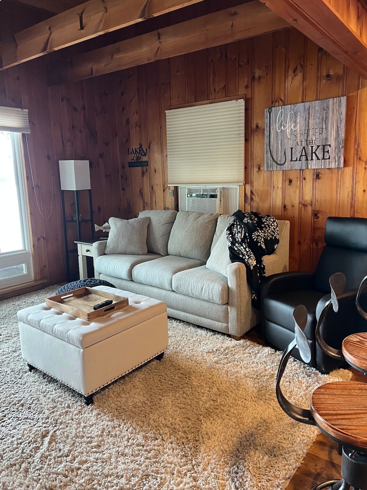 Tässä ainutlaatuisessa ja rauhallisessa lomakohteessa on helppo rentoutua. Haluamme sinun nauttivan järvitalostamme yhtä paljon kuin mekin. Valmistaudu astumaan ovesta sisään ja jättämään kaikki stressi taaksesi. 2 makuuhuonetta, joissa on queen-vuoteet, joista toisesta on näkymä järvelle. Yksityinen loft queen-size-vuoteella. Ulkotakka, soutuvene, kanootti, 2 kajakkia. Pisin vuokra-aika on 13 päivää. 25-vuotias vuokra. Ei lemmikkieläimiä. Meillä on alle 12-vuotiaita lapsia koskevia rajoituksia turvallisuussyistä turvallisuuteen liittyvistä syistä. Enimmäiskapasiteetti 6