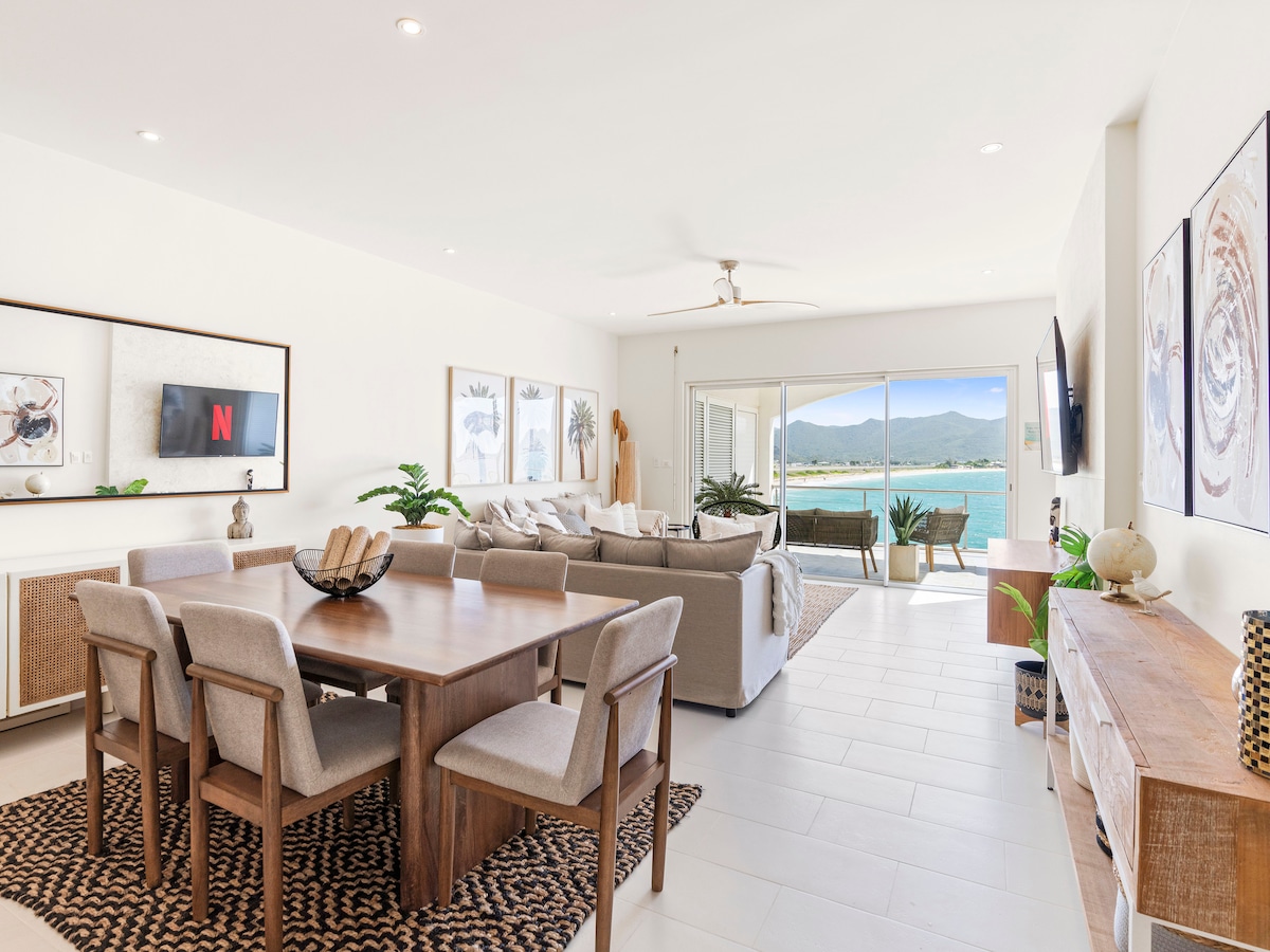 Ehdottoman upea condo-huoneisto, jossa on tilava makuuhuone ja kylpyhuone, ylellisen rakennuksen toisessa kerroksessa Simpson Bayn sydämessä. Mikä on yksi saaren parhaista rannoista. Nauti koskemattomasta valkoisesta rannasta ja 50 sinisen sävystä aivan edessäsi (suora pääsy rannalle). Suuressa avoimessa pohjapiirustuksessa on ruokailutila ja olohuone, jossa on ranta, jolta on näkymä terassille. Lisäominaisuuksiin kuuluvat täysin varustettu keittiö, tv olohuoneessa, pesukone ja kuivausrumpu sekä WiFi.