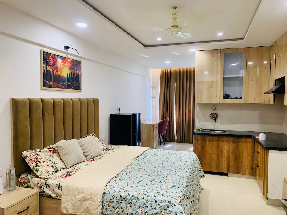 Tervetuloa The Starlit Stays – viihtyisään ja moderniin yksiöhuoneistoon, joka sopii erinomaisesti yksin matkustaville ja pariskunnille. Se sijaitsee vain lyhyen kävelymatkan päässä ostoskeskuksista, yleisistä kaupoista ja lääketieteellisistä tiloista, ja se on ihanteellinen pakopaikkasi kaupungissa. Nauti älykkäistä mukavuuksista, kuten televisiosta, wifistä, ilmastoinnista, savupiipusta, jääkaapista, RO-vedenpuhdistimesta, geysiristä ja hissistä. Ympärivuorokautisen turvakameravalvonnan ansiosta majoittumisesi on sekä turvallinen että mukava. Rauhallinen ja tyylikäs piilopaikka, joka on suunniteltu mukavuutta ja yhteyksiä ajatellen.