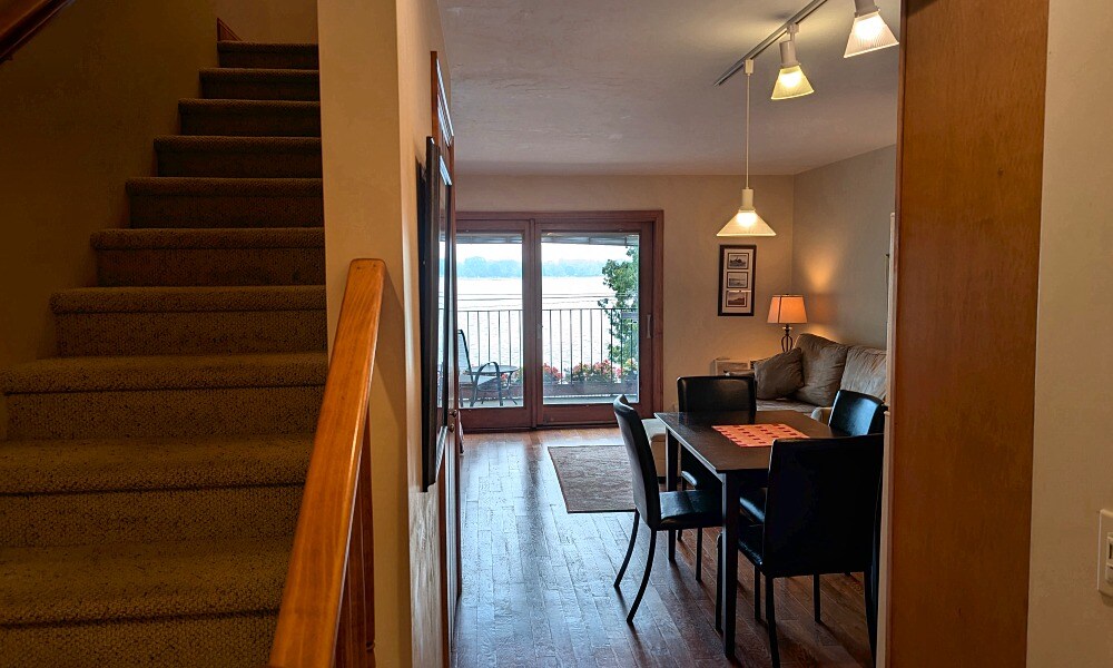 Uusi, ylellinen, täysin kalustettu huoneisto, joka sijaitsee Sister Bayn keskustan sydämessä, josta on vesistönäkymät ja joka on suoraan vastapäätä Sister Bay Beachia. 2 makuuhuonetta, joissa on queen-vuoteet ja omat kylpyhuoneet, joissa on laattasuihkut, täysikokoinen keittiö, jossa on graniittitasot, ruostumattomasta teräksestä valmistetut kodinkoneet, 55" TV, pyykinpesukone/kuivausrumpu, takka ja liitetty autotalli varmistavat vierailun, joka tekee paluuvierailuista jotain, mitä haluat tehdä säännöllisesti. Sohva kallistuu myös lisävuodealueeksi, ja nopea Spectrum Broadband -palvelu on käytettävissä suoratoistopalveluiden käyttämistä varten. Ei ole parempaa majapaikkaa, kun vierailet Door Countyssa ja kaikessa, mitä se tarjoaa. Sister Bayssa on nähtävyyksiä, kuten vuohet Al Johnson'sissa, paikallisia kahviloita, rentoja ja hienoja ruokapaikkoja, monia kauppoja ja gallerioita tai vain nauttimista näkymästä kadun toisella puolella olevalta rannalta. Jos haluat majoittua ja rentoutua, yksikön sisäinen takka kutsuu sinut käpertyä päiväksi ja nauttimaan rauhallisesta ajasta yhdessä. Olitpa täällä lyhyellä lomalla, viikon lomalla tai festivaalilla, Beach View Condos on paikkasi stressittömään kohteeseen. Hyvä paikka kahdelle pariskunnalle tai perheelle. **Tarkista majoittajalta, onko muita huoneistoja varattavaksi, jos ryhmäsi on suurempi. **Tämä on kaupunkitalo, jossa on kaksi portaikkoa – ei esteetön