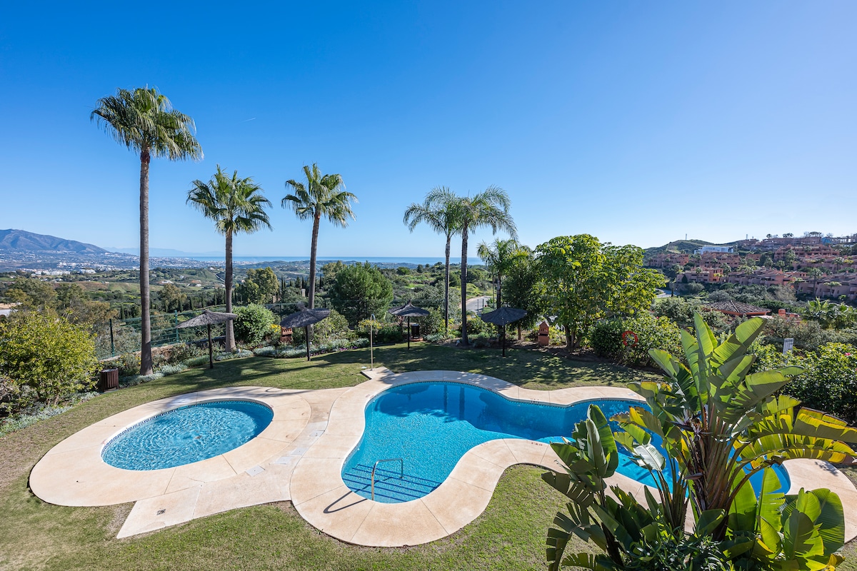 Ylellinen huoneisto upeilla näkymillä, uima-altaalla ja golfkentällä