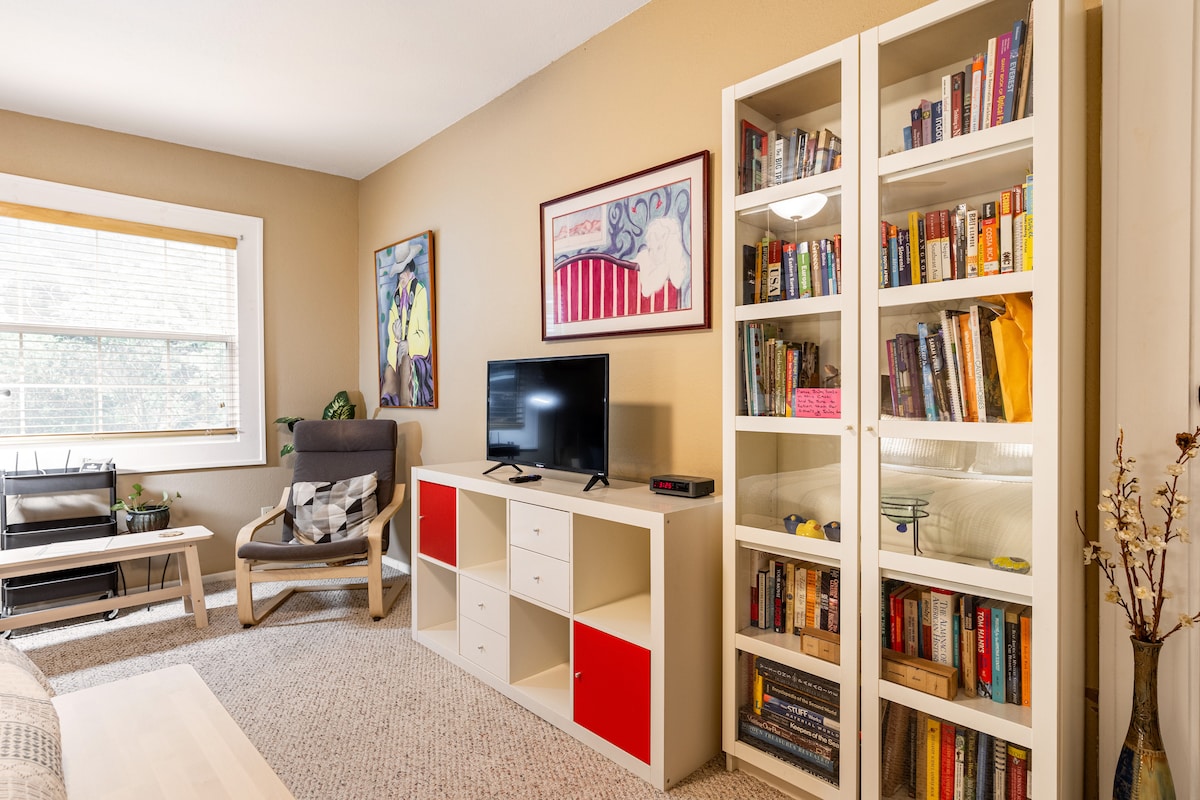 Yksityinen studio, king-vuode, hierontatuoli ja sohva