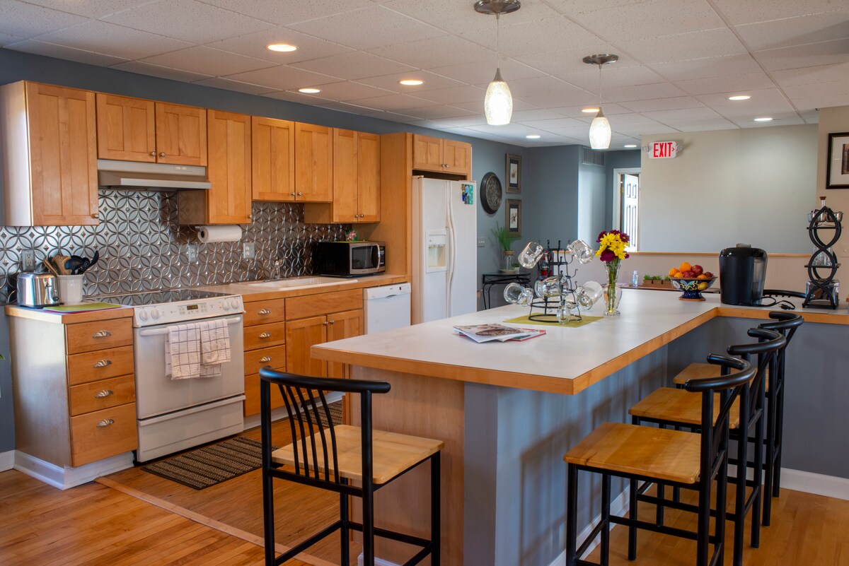 Historiallinen huoneistomme Richmondin keskustassa on täydellinen majoitus kaikkiin tilaisuuksiin. Tämä 1800-luvulla rakennettu tila on erittäin persoonallinen ja historiallinen. Retro-vintage-/boho-sisustuksen ansiosta tunnet olosi nostalgiseksi ja rauhalliseksi täällä ollessasi. Keskustan rakennukset ovat kauniita, ja Main Streetin näkymä saa sinut tuntemaan olevasi suurkaupungissa, vaikka olet edelleen tässä viehättävässä, kiireisessä pikkukaupungissa, jossa on niin paljon tarjottavaa! Kävelyetäisyydellä baareihin, ravintoloihin ja moniin söpöihin kauppoihin.