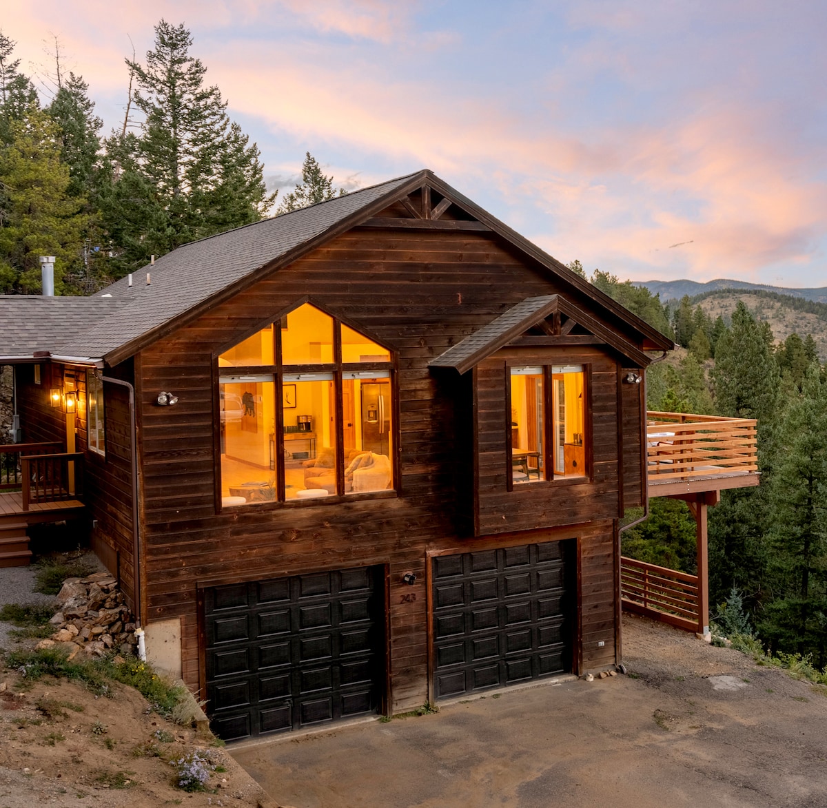 Koe Triangle Cabinin viehätys. Tämä viihtyisä kolmionmuotoinen mökki tarjoaa henkeäsalpaavat panoraamanäkymät Coloradon vuorille. Tämä kutsuva piilopaikka sijaitsee vain 1,5 tunnin päässä Denveristä ja tarjoaa rauhallisen pakopaikan kaupungin hälinästä. Harkiten varustetussa mökissä on poreallas, josta on upeat näkymät, viihtyisä nuotiopaikka, täysin varusteltu keittiö sekä valikoima pelejä ja kirjoja, jotka rohkaisevat sinua rentoutumaan ja irrottautumaan arjesta. The Triangleen pääsemiseksi vaaditaan neliveto 1.9.–31.5.