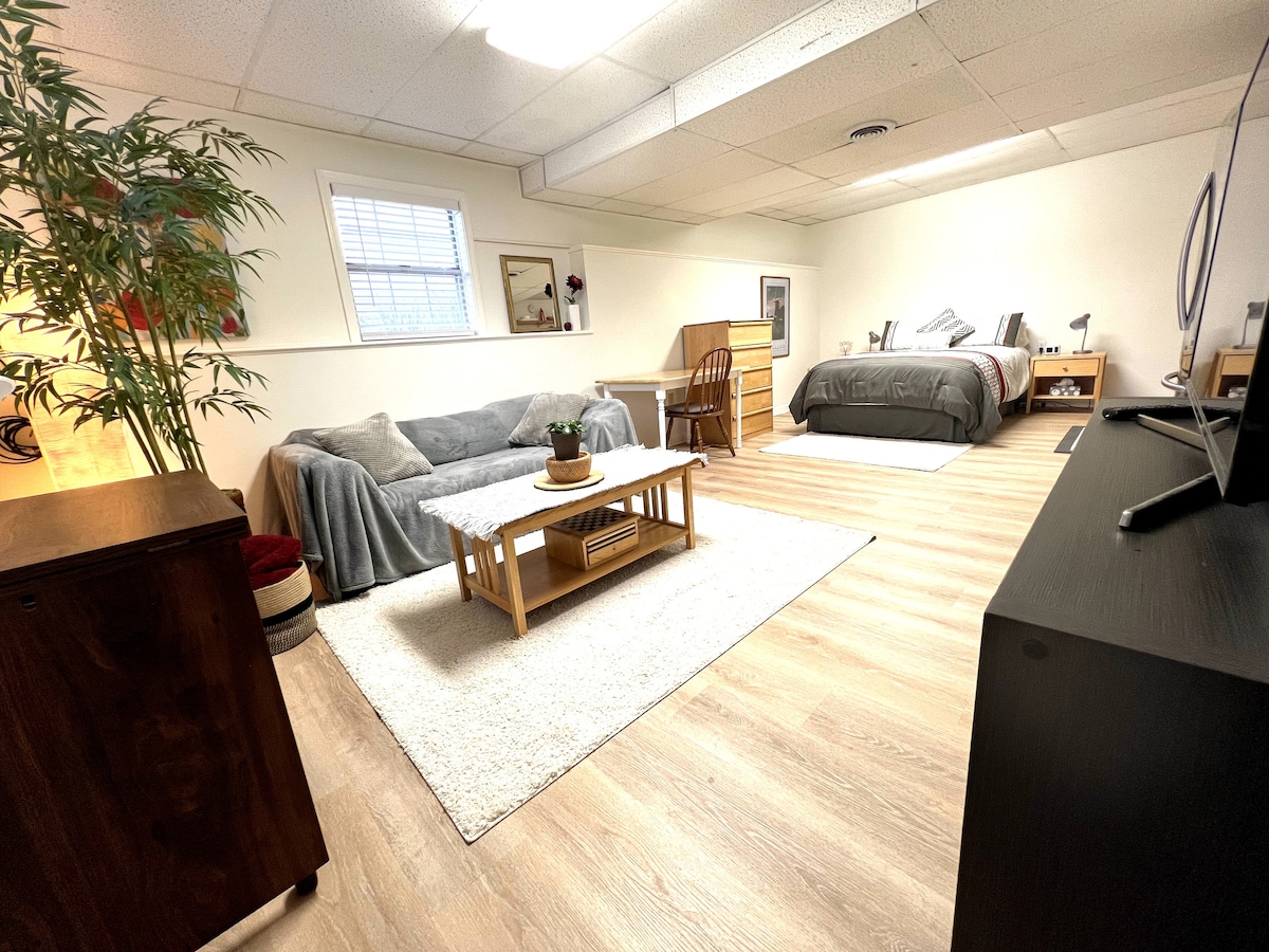 HUOMAA: Airbnb:n suosittelemissa siivousmenettelyissämme käytetään tehostettuja vaiheita perusteellisessa siivouksessa ja puhdistuksessa. Perheemme ja vieraidemme terveys ja turvallisuus on meille tärkeää. Vierailetko perheessäsi, matkustatko työn merkeissä vai tarvitsetko rauhallisen loman? Tämä on koko vierassviitti, jossa on oma sisäänkäynti, pesukone ja kuivain, suuri kylpyhuone, tilava makuuhuone, jossa on queen-vuode, mukava olohuone, jossa on vuodesohva, älytelevisio ja täysin varusteltu keittokomero, jossa on mahdollista ruoanlaittoon ja leivontaan.
