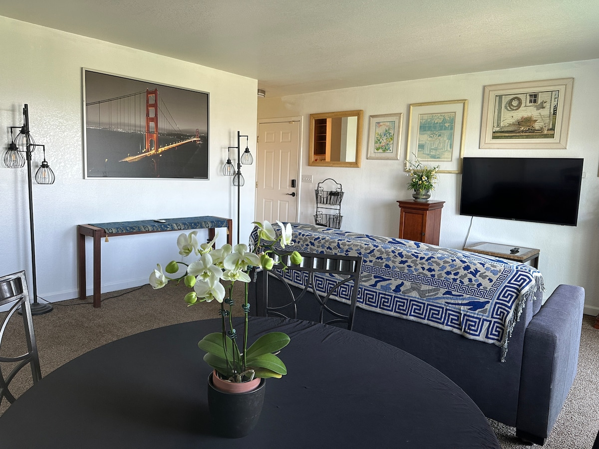 ROMANTIC PRIVATE SUITE-Great area! VIEWS of Mt. Tam/Bay. Near Napa, SF & Berkeley! Patio, ZEN GARDEN, Japanese maple, oak. Heat + AC. Your spacious room & PRIVATE BATHROOM & sep. entrance. Healthy snacks. Hardwood, closet, smart TV, FAST WIFI, EV CHRGR. Come & go as you please. LGBTQ/420/NURSE friendly. Smkg outside. Peaceful. Cute pup. Easy self check-in. (Reiki, sauna for extra) Cozy! Attached private suite. EnJOY a comfy stay. Chocolates! 7-days = free laundry use. 4-days = 1 free sauna!