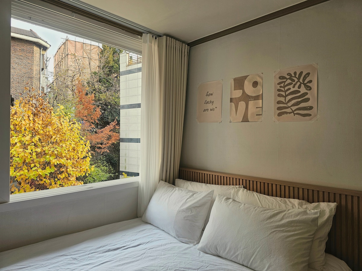 Tervetuloa Mistakes Houseen, yksityiseen hanokiin Soulin sydämessä. Gyeongbokgungin palatsi, Gwanghwamun, Seochon, Bukchon, Insa-dong ja Myeongdong ovat kaikki Soulin parhaita paikkoja. Nouse bussiin talon edessä olevalla pysäkillä ja nauti rentouttavasta päivästä perinteisessä maisemassa. Tämä majoitus on valittu Soulin suosituimmaksi majoitukseksi kahtena peräkkäisenä vuonna 2024 ja 2025. Se on täydellinen yhdistelmä perinteisen hanokin rauhallista tyyliä ja modernia mukavuutta. Jokainen kerros on sinun käytössäsi, ja Soulin rauhallinen henki suodattuu ikkunasta. Tämä on myös hanok, jossa eteläkorealainen muusikko Park on tehnyt musiikkia 3 vuotta. Piano, aistillinen valaistus ja lämpimät huonekalut luovat taiteellisen tunnelman ja rentouttavan lämmön. Matkustaminen perheen kanssa, romanttiset päivät rakastavaisten kanssa ja erityiset kokoontumiset ystävien kanssa. Riippumatta siitä, kuka majoittuu täällä, päivästäsi täällä tulee tarina Soulin erityisimmästä hanokista, joka muistetaan pitkään.