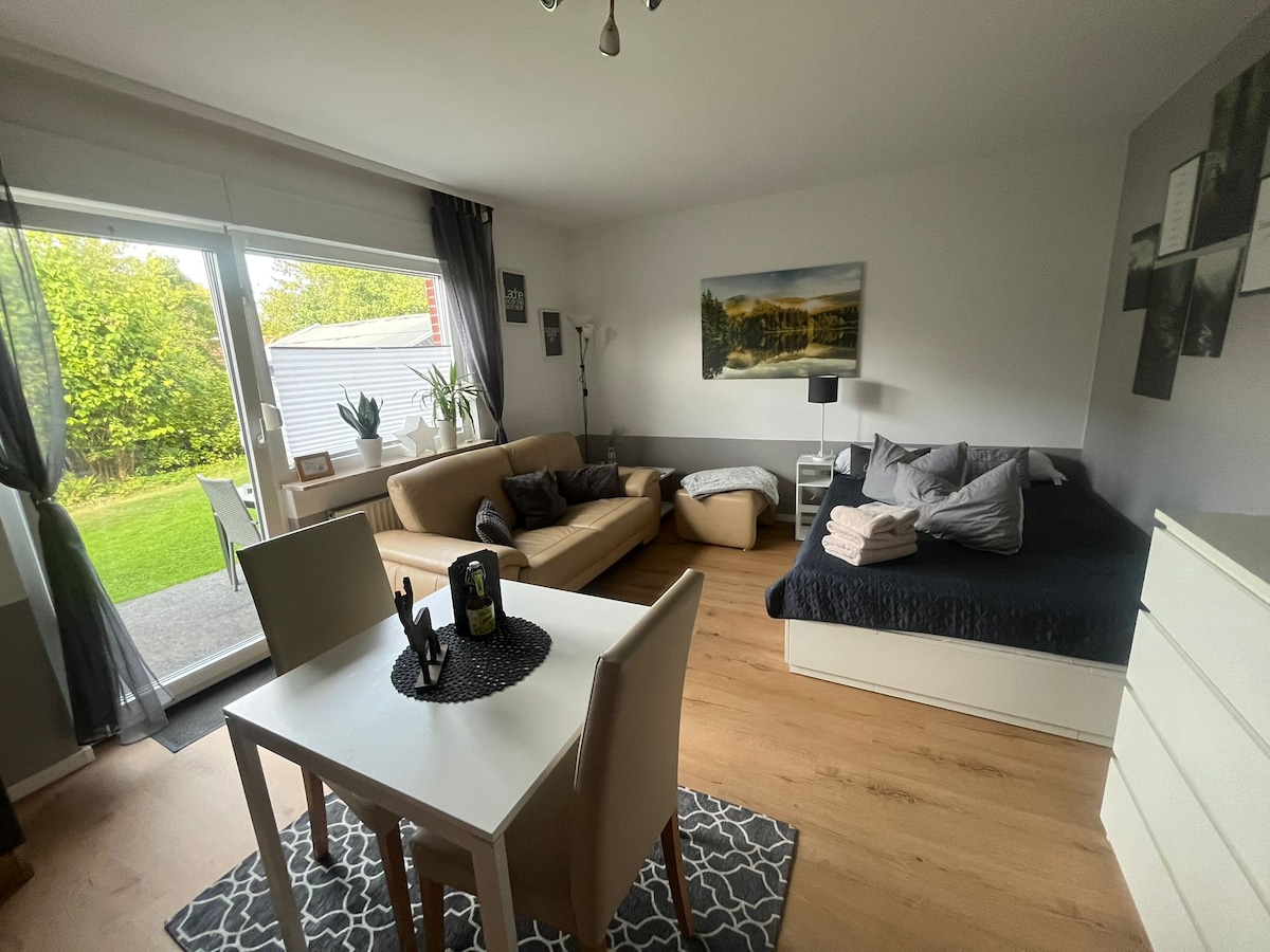 Saat asua erillisessä huoneistossa, jossa on kylpyhuone ja keittokomero, talossani rauhallisella paikalla kaupungin ulkoseinustalla. Keittiössä on kahvinkeitin, mikroaaltouuni, Domino-keittotaso ja jääkaappi pakastinosalla sekä astiat jopa 6 hengelle. Mukava ja moderni loma-asunto sijaitsee pohjakerroksessa ja siellä on oma pääsy puutarhaan.