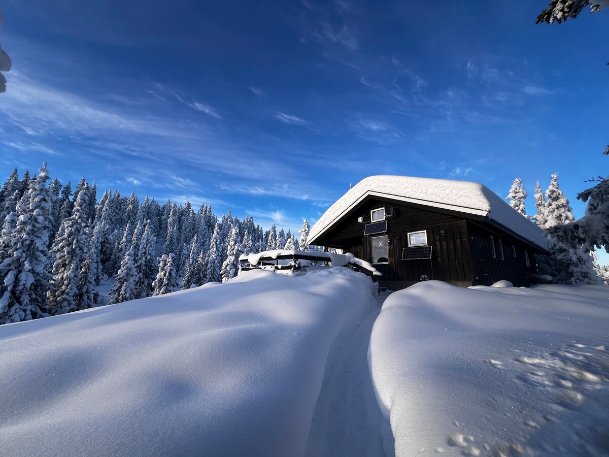 Viihtyisä vuoristomökki 930 m merenpinnan yläpuolella.