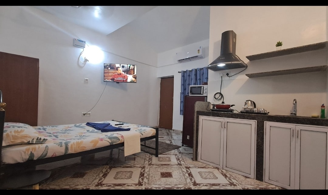 Söpö ja viihtyisä Riverside Studio Siolimissa, Goassa Tämä viehättävä mutta tilava yksiö sijaitsee keskeisellä paikalla Siolimissa, aivan joen varrella, ja vain 13 minuutin ajomatkan päässä Morjimin rannan hiekkarannoilta. Elintarvikekaupat ja ravintolat ovat vain 5 minuutin kävelymatkan päässä päivittäisiin tarpeisiisi. Suositut paikat, kuten Thalassa, Kiki by the sea ja muut tunnetut bilepaikat, ovat vain 10 minuutin ajomatkan päässä, joten kohde sopii täydellisesti vieraille, jotka haluavat nauttia sekä rauhallisista aamuista että vilkkaista iltoista.