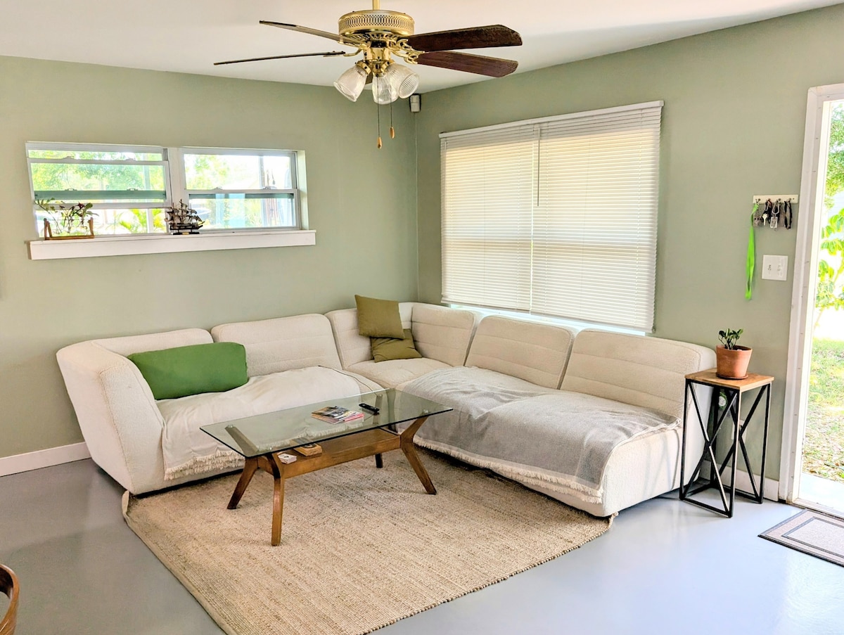 Poikkeuksellisen yksityinen taiteilijan koti, jossa on suolauima-allas (ei lämmitetty) trooppisen maisemallisen aidatun takapihan ja suuren suojatun kuistin ympäröimänä, palmujen ympäröimänä. 10 minuuttia St Pete Beach, Treasure Island, Sunset Beach tai St Petersburgin keskusta. 5 minuuttia vanhaan Floridaan Gulfportin keskustaan ja yksi kortteli Pinellas Trail -reittiin. Ympäristöystävällinen ja lemmikkiystävällinen (vain vihreät puhdistusaineet ja ei torjunta-aineita) 130 neliömetrin kohteemme (plus 28 neliömetrin kuisti) sijaitsee turvallisella asuinalueella, lähellä kaikkea.
