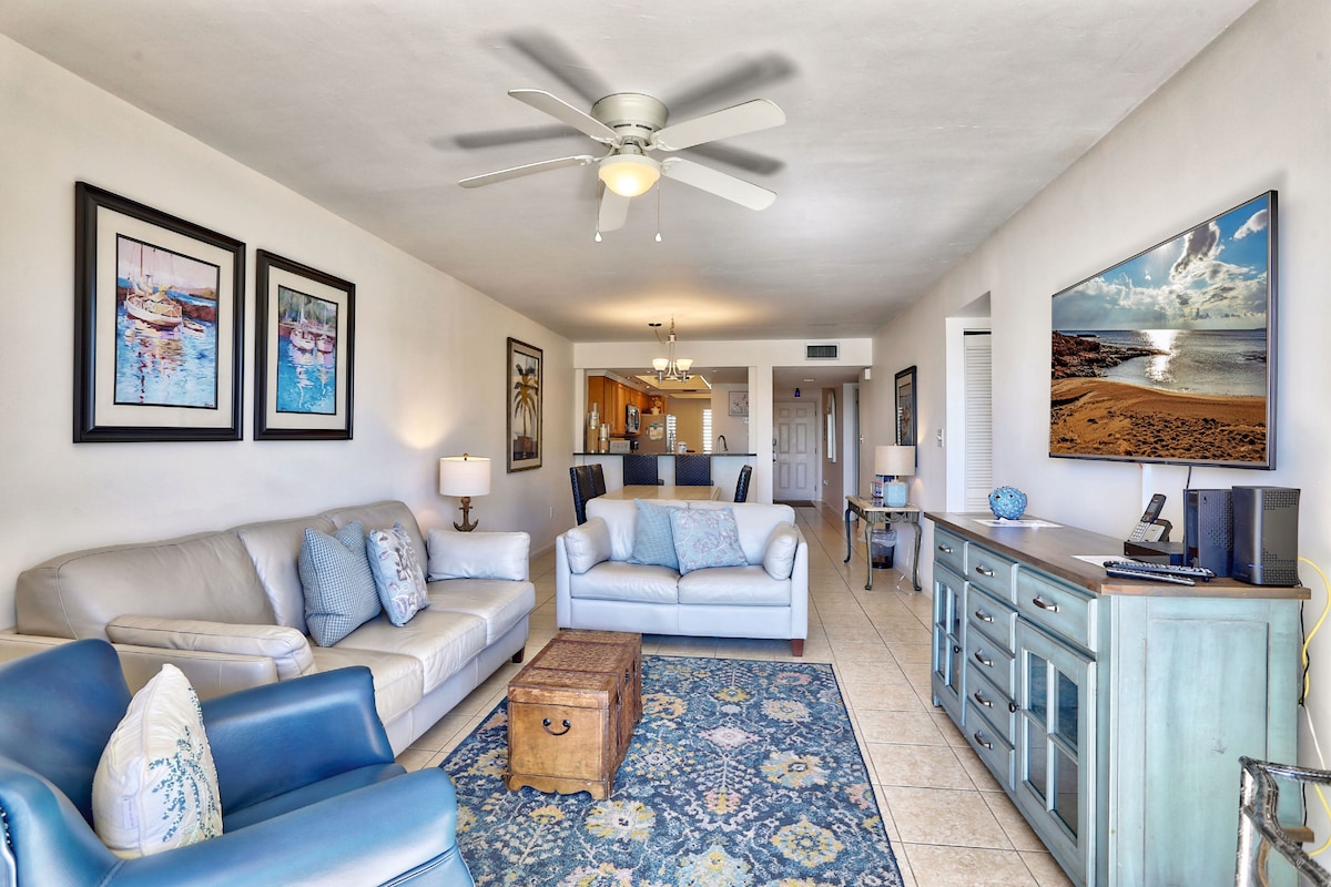 Dreaming of a Florida getaway with sunny beach days, golf course views, and dolphin sightings? This guest-favorite 2BR/2BA condo is just 5 minutes from St. Pete Beach, dining and shopping. Enjoy resort-style perks: a heated pool and hot tub steps from your front door, plus a private bay front beach with tiki umbrellas and sun loungers. Inside, a king suite, full kitchen, balcony views, and beach gear await. As one of the few owner managed Airbnb's, rest assured, your comfort is our top priority.