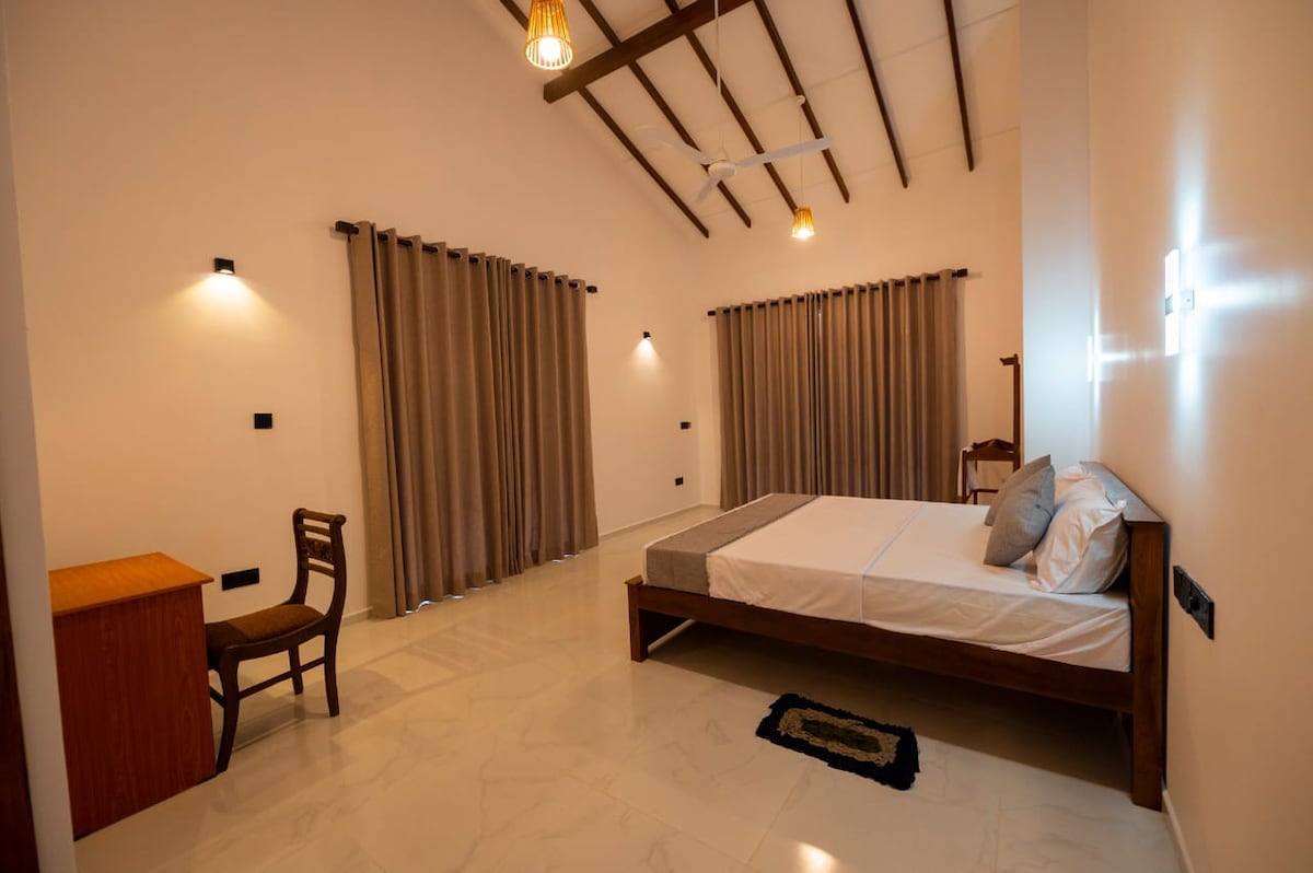Herää linnunlauluun ja pehmeään aamunvaloon, joka suodattuu puiden läpi. Valoisa ja rauhallinen koti lähellä pientä järveä. Ympärillä on rehevä viidakko, perhosia, lämmin tuuli ja luonnon lempeät äänet. Täydellinen etätyöntekijöille, kirjailijoille ja tietoisille matkailijoille, jotka haluavat elää jonkin aikaa paikallisten tavoin. Kokkaa, lue, hengitä ja koe todellinen elämä Sri Lankassa – rauhallisessa, aidossa kodissa, jossa voit hidastaa tahtia, viipyä pidempään ja todella yhdistyä siihen, mikä on tärkeintä. Täällä yksinkertaiset asiat tuntuvat todelliselta ylellisyydeltä. 🌿