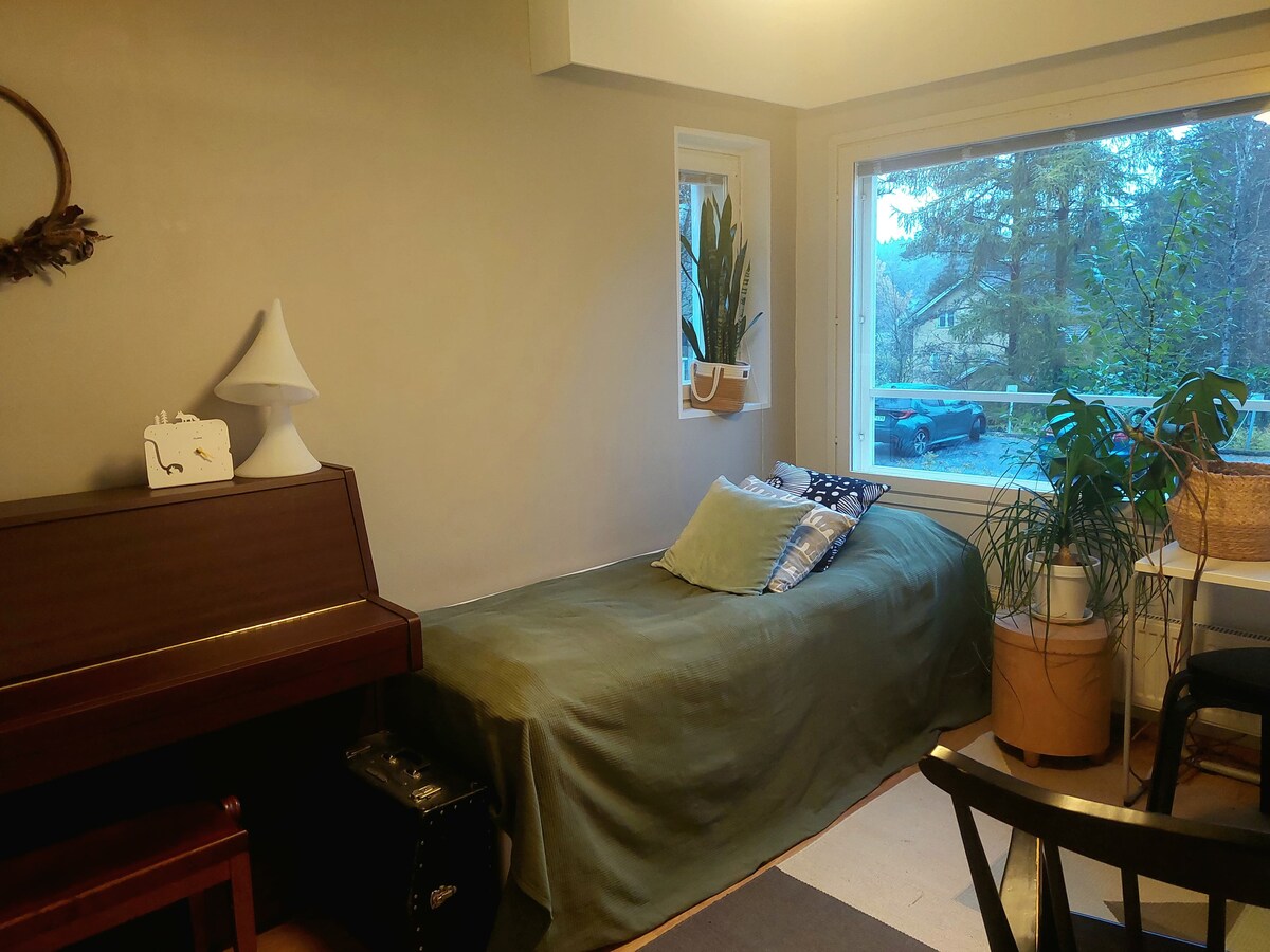 Tervetuloa majoittumaan meille! Huoneesi sijaitsee asuntomme alakerrassa. Saat ottaa lemmikin mukaan, mutta kerrothan siitä meille etukäteen. Huoneeseen kuuluu yksityinen wc ja jaettu kylpyhuone. Feel welcome to stay with us! Your room is downstairs of our apartment and you can bring a pet with you. Please tell us in advance, if you're bringing a pet. In the room you have a private toilet and a shared bathroom.