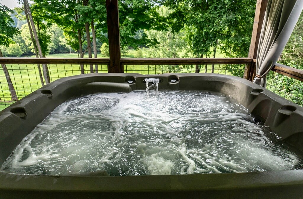 Moderni mökki, jossa on poreallas, lähellä Fall Creek Fallsia
