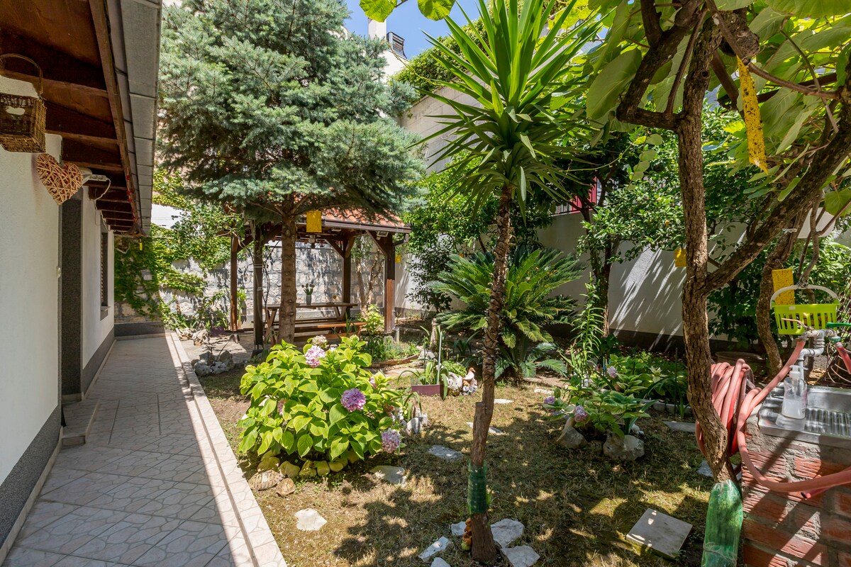 Tämä majoitus sijaitsee kaupungin keskustassa, joten kaikki mukavuudet ovat ulottuvillasi. Tämä huoneisto on täydellinen valinta sinulle, jos haluat majoittua Splitin sydämessä. Huoneisto on täysin varusteltu. Käytettävissäsi on terassi, jolta on kaunis näkymä "paratiisipuutarhaamme". Vaikka kohde sijaitsee kaupungin keskustassa, vieraat voivat rentoutua rauhassa ja hiljaisuudessa. Lähin ruokakauppa sijaitsee rakennuksen sisällä vain 10 metrin päässä huoneistosta.