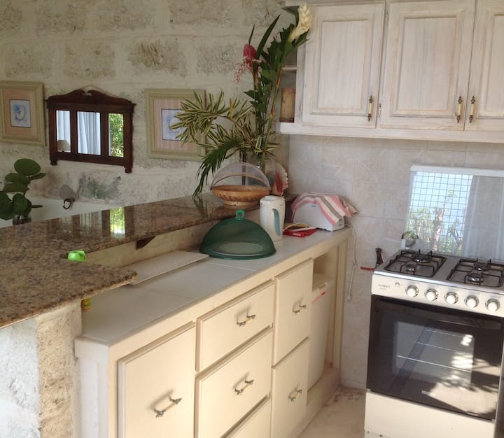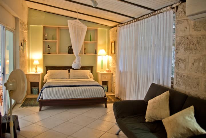 Tilava ilmastoitu yhden makuuhuoneen asunto, jossa on oma kylpyhuone. Suuri oleskelutila, jossa on ulkoterassi ja puutarha, täydellinen elämä luonnon kanssa.