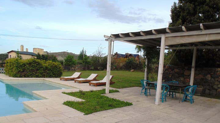 Viidennessä on grilli ja varustettu keittiö tilavassa ja valoisassa ympäristössä; 2 makuuhuonetta (1 parivuode ja toisessa kerrossänky ja vuode alla); kylpyhuone ja wc; uima-allas, jossa on kostea solarium ja lepotuoleja; pergola, jossa on pöytä ja tuolit; tv, jossa on dtv.- Suuri puisto, jossa on yksinoikeus käyttää. - Se sijaitsee 100 metrin päässä järvestä ja 30 korttelin päässä ostoskeskuksesta. Alue on hyvin hiljainen. Ei yötapaamisia kovan musiikin kanssa.